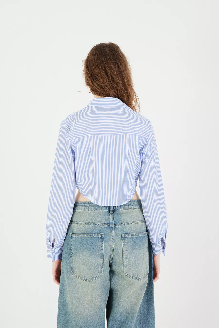 Chemise courte à manches longues rayée
