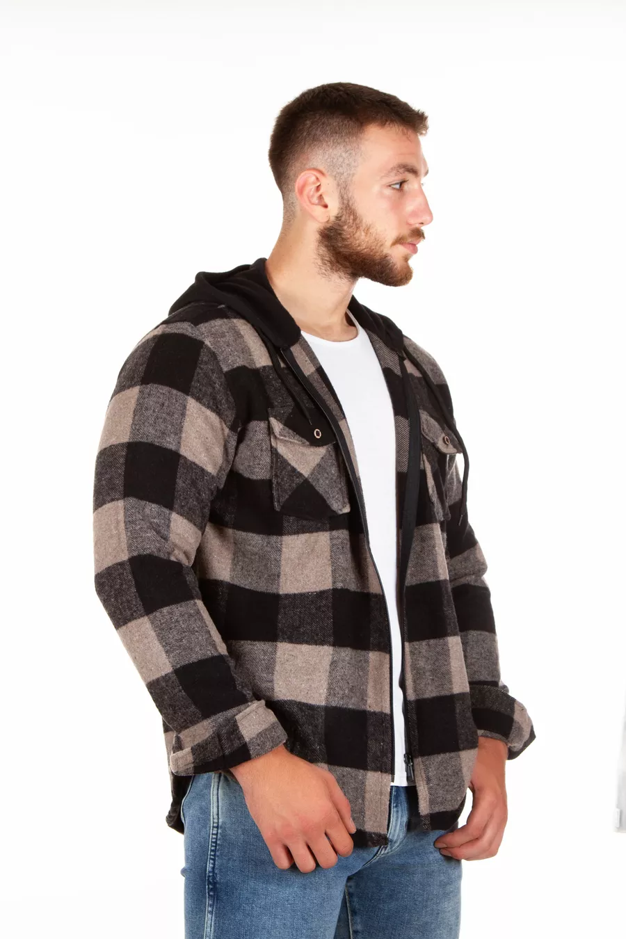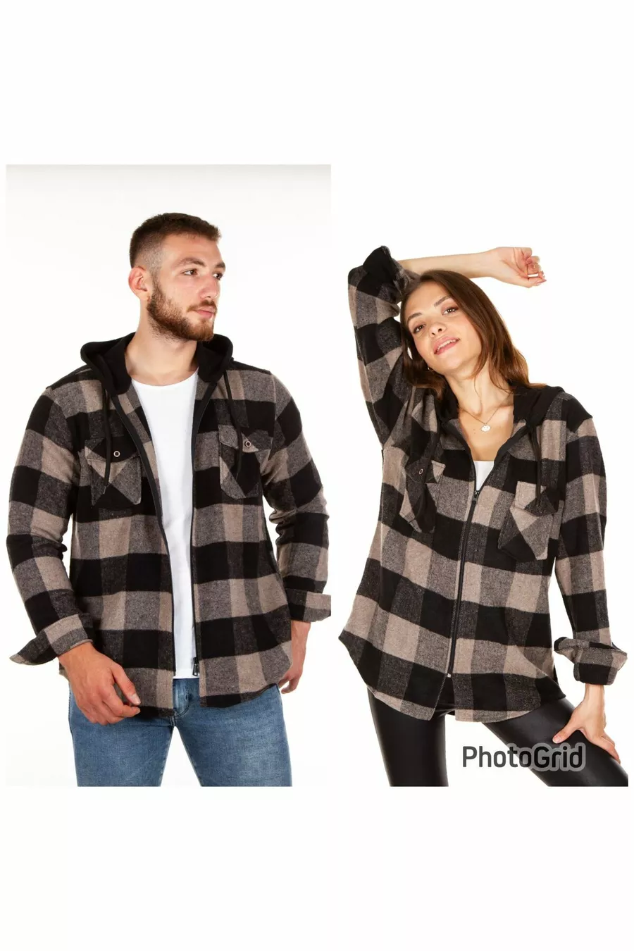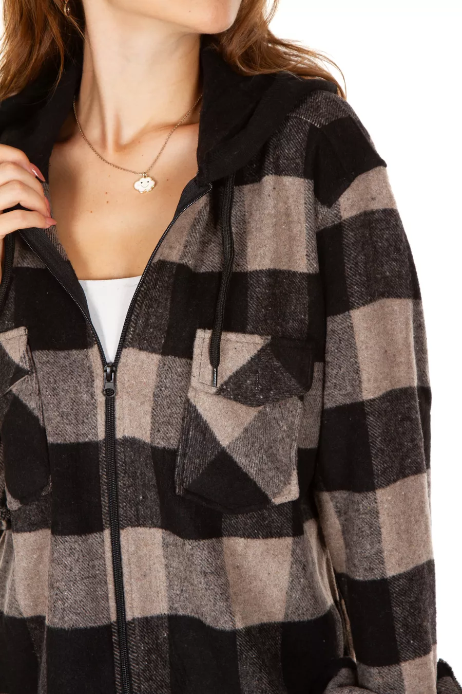 Chemise en flanelle unisexe à capuche et fermeture éclair en acrylique