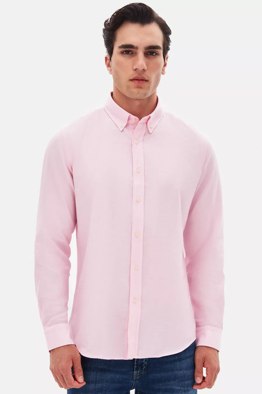Chemise en coton rose armurée slim fit à col boutonné Ds Damat