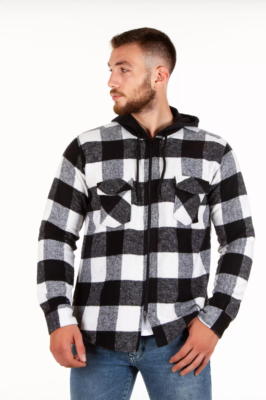 Chemise en flanelle unisexe à capuche et fermeture éclair en acrylique