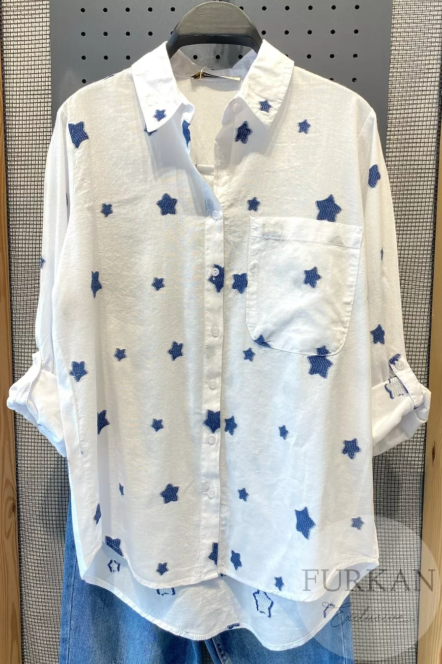 Chemise fine en coton pour femme avec broderie d'étoile blanche
