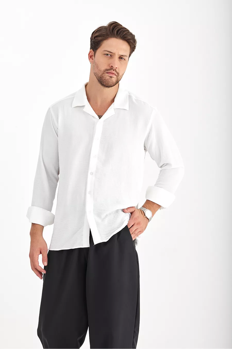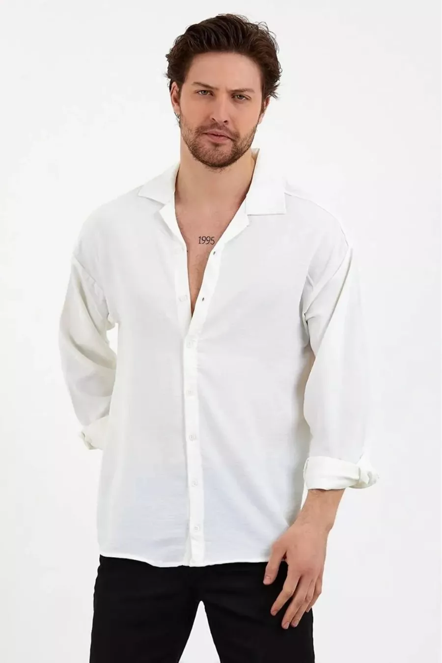 Chemise oversize en lin blanc pour homme à coupe ample et texture Ayrobin
