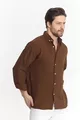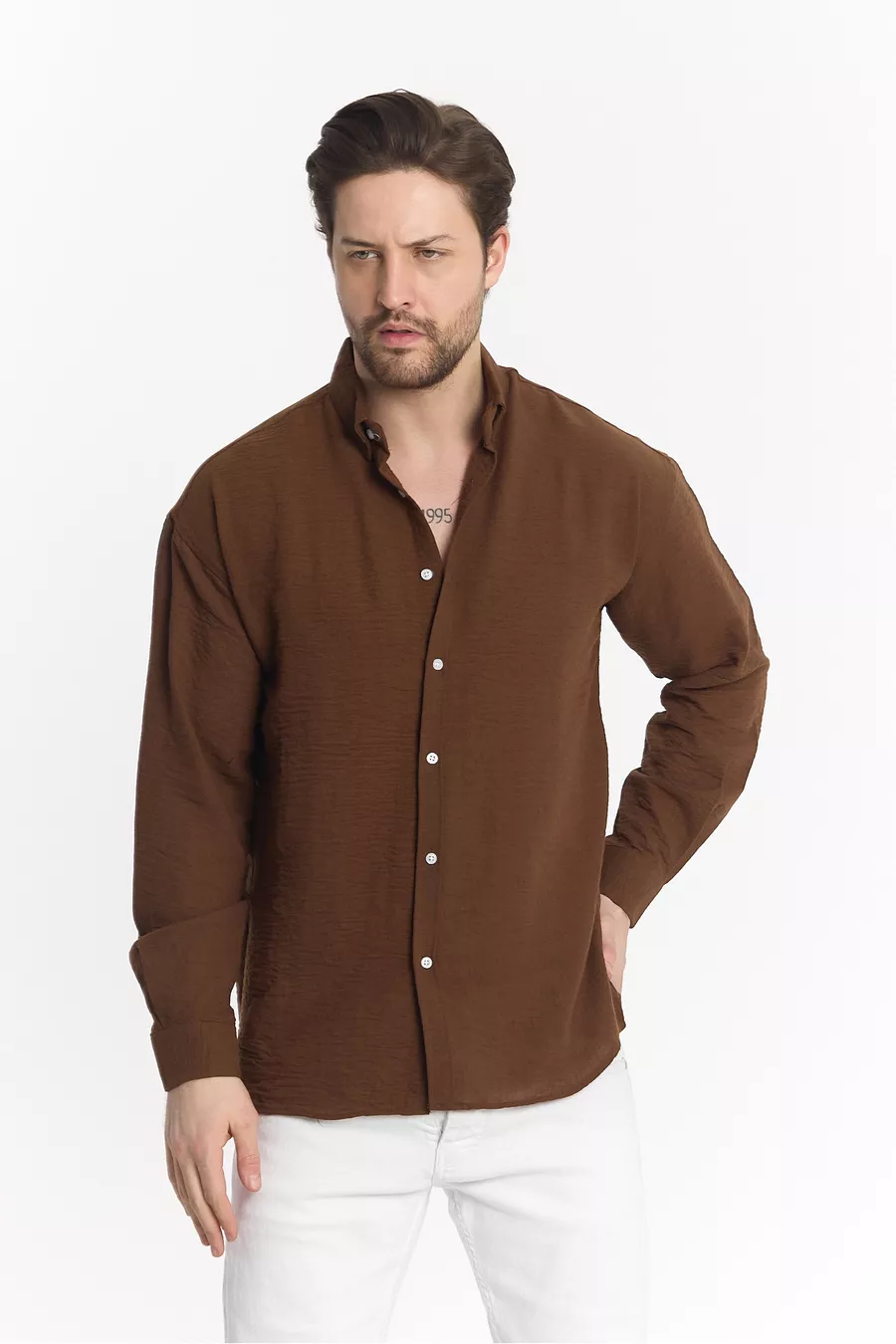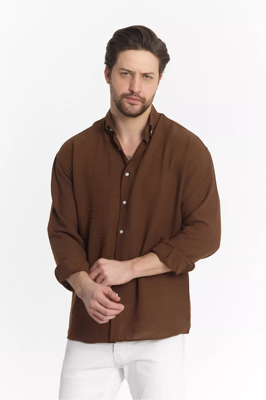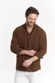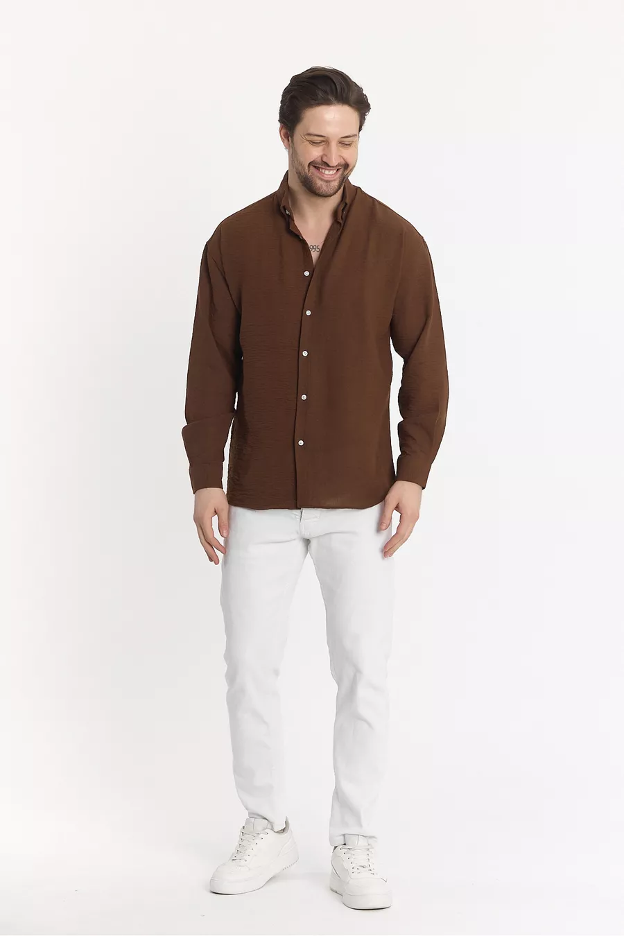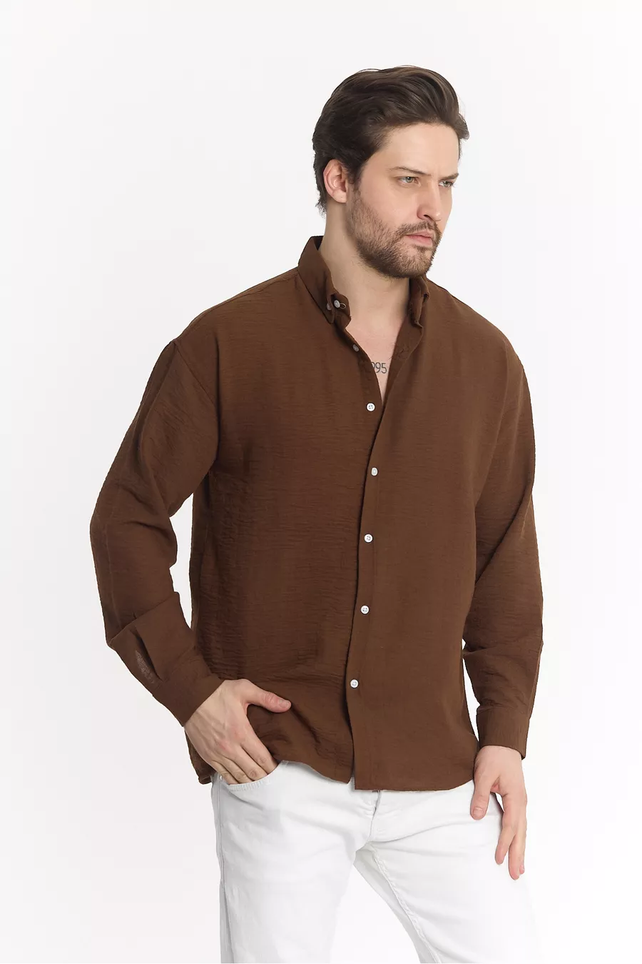 Chemise oversize à manches longues pour homme en lin texturé couleur café