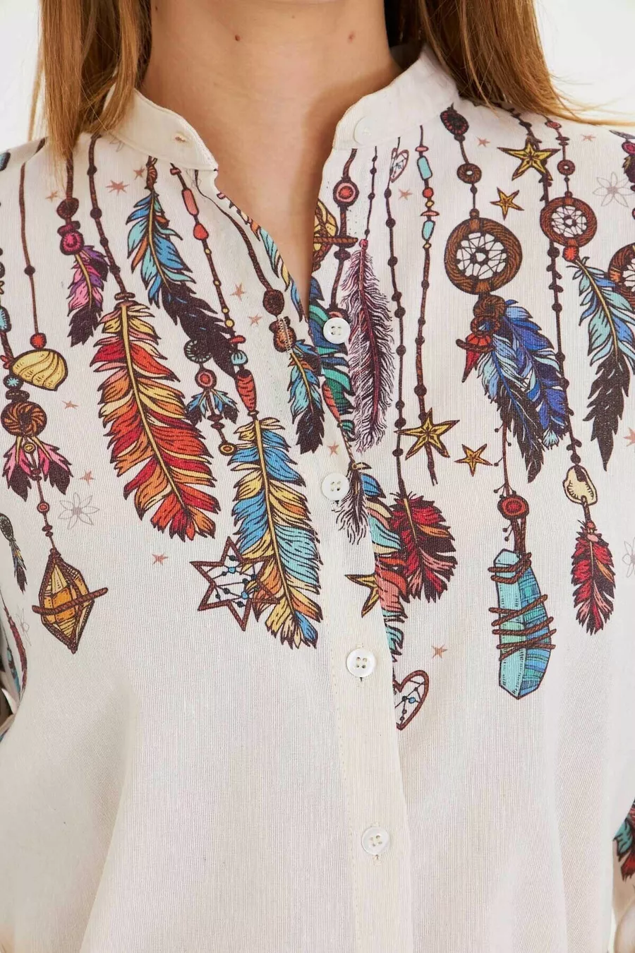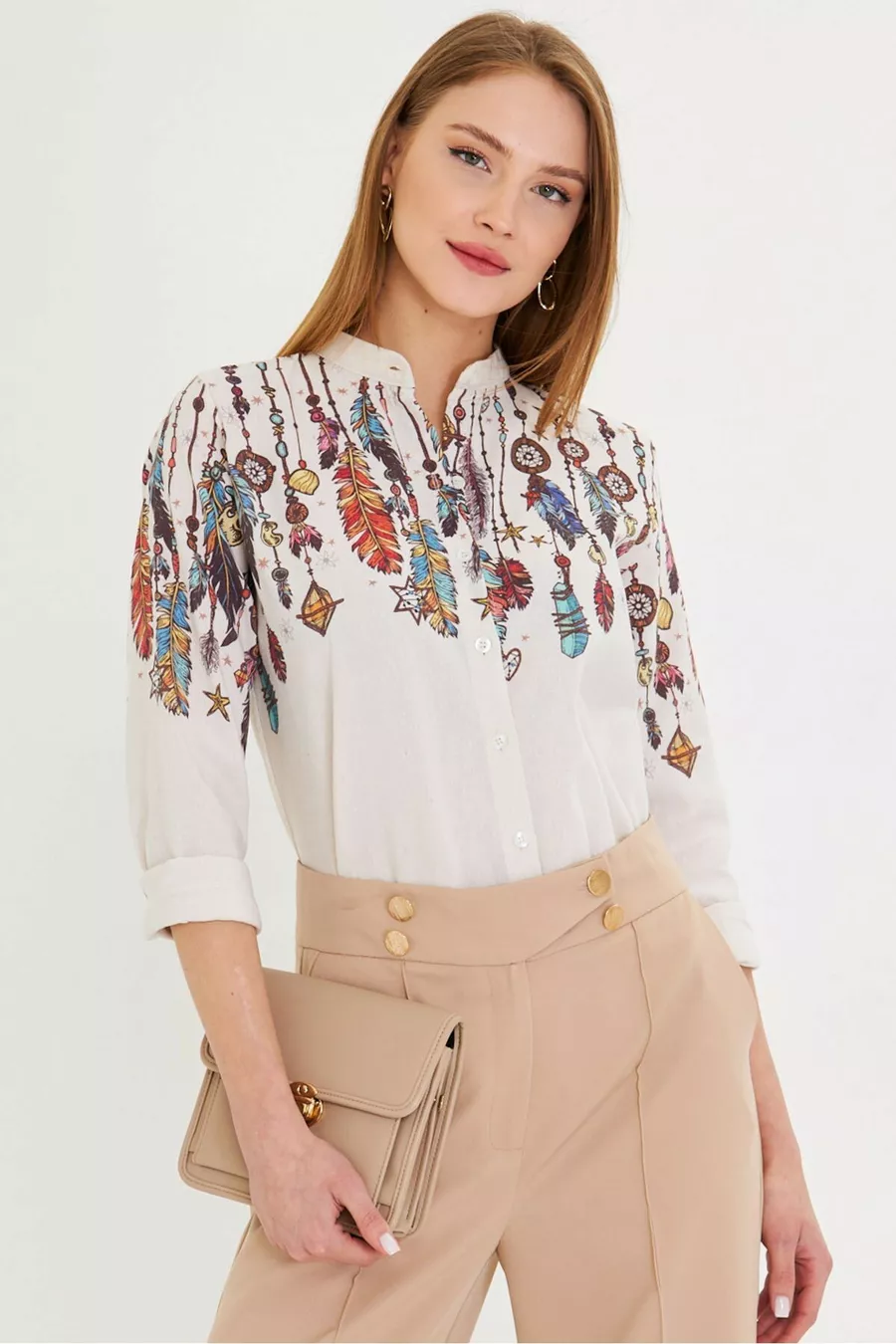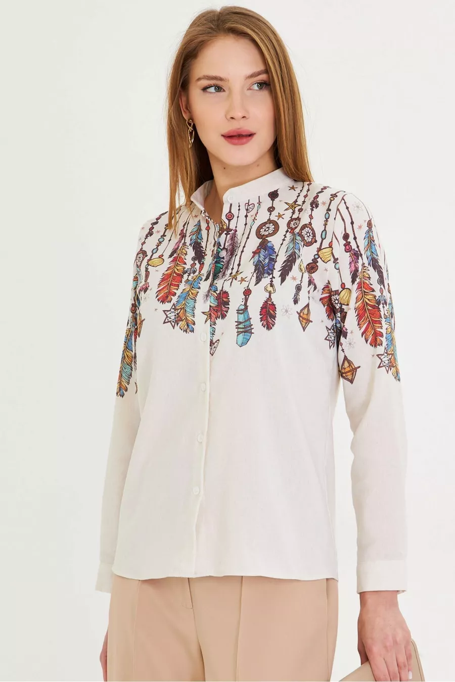 Motif : Imprimé Patron : Regular Type de col : Col mao Type de tissu : Tissé Type de manche : Manche standard Couleur : Beige Matériau : Mélange de polyester Fermeture : Boutonnée Longueur de manche : Longue Taille : Regular Occasion : Casual/Quotidien Silhouette : Basique Caractéristique supplémentaire : Imprimé Type de tissage : Satin Détail sur la durabilité : Non Instructions de lavage : Type 1 Origine : TR