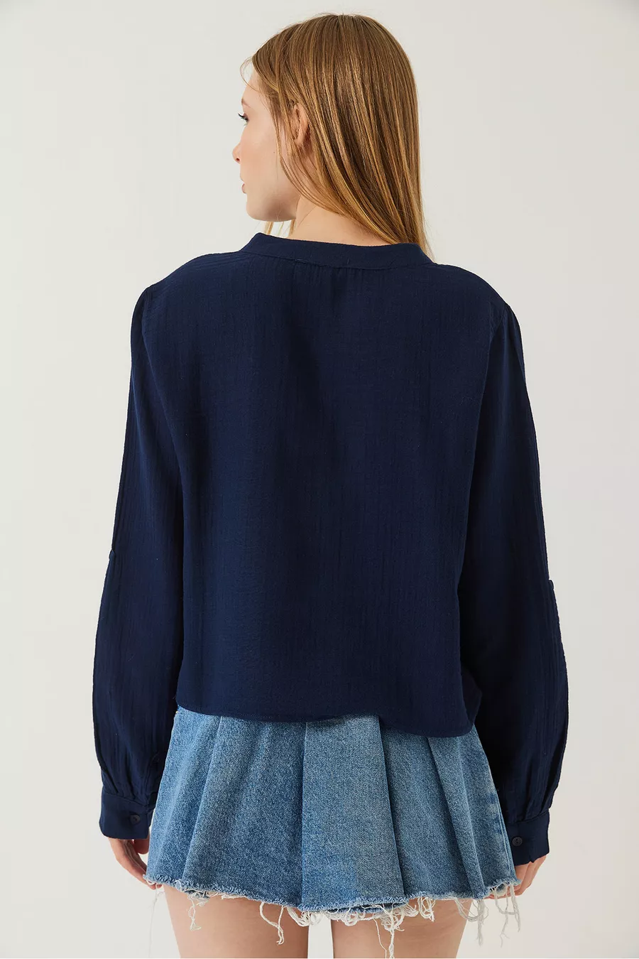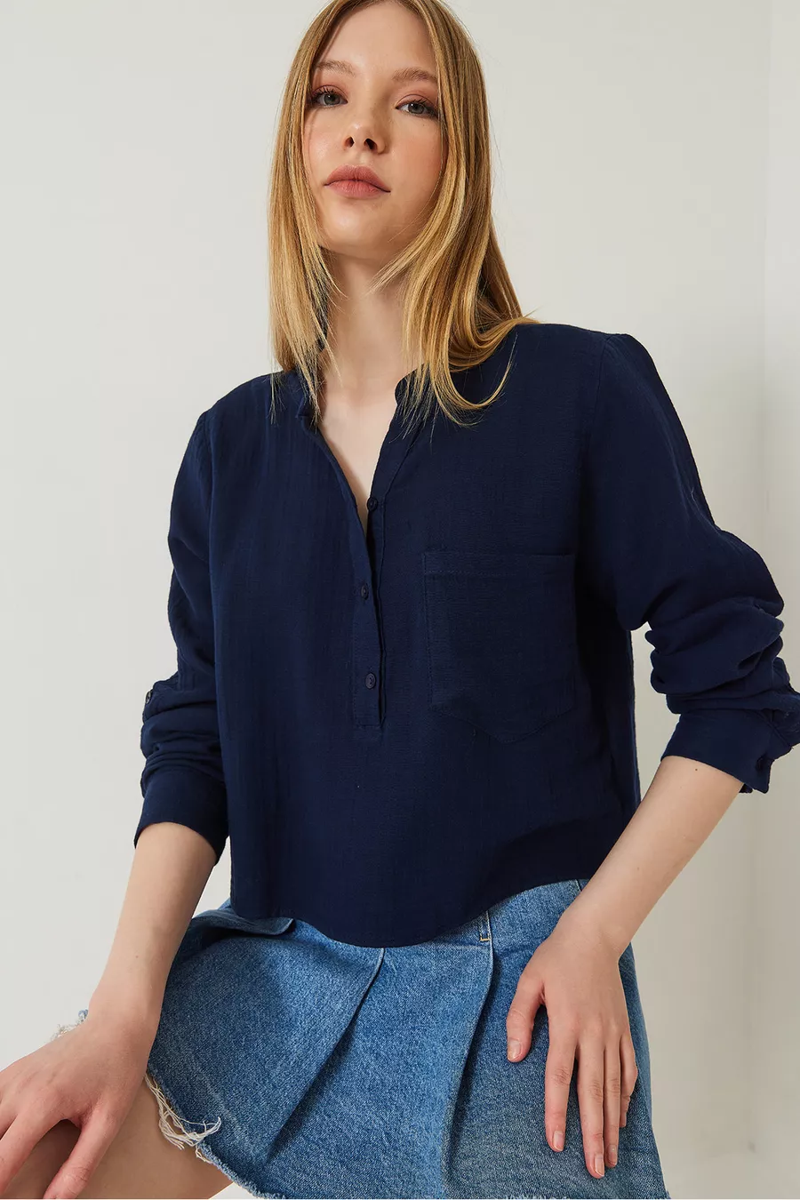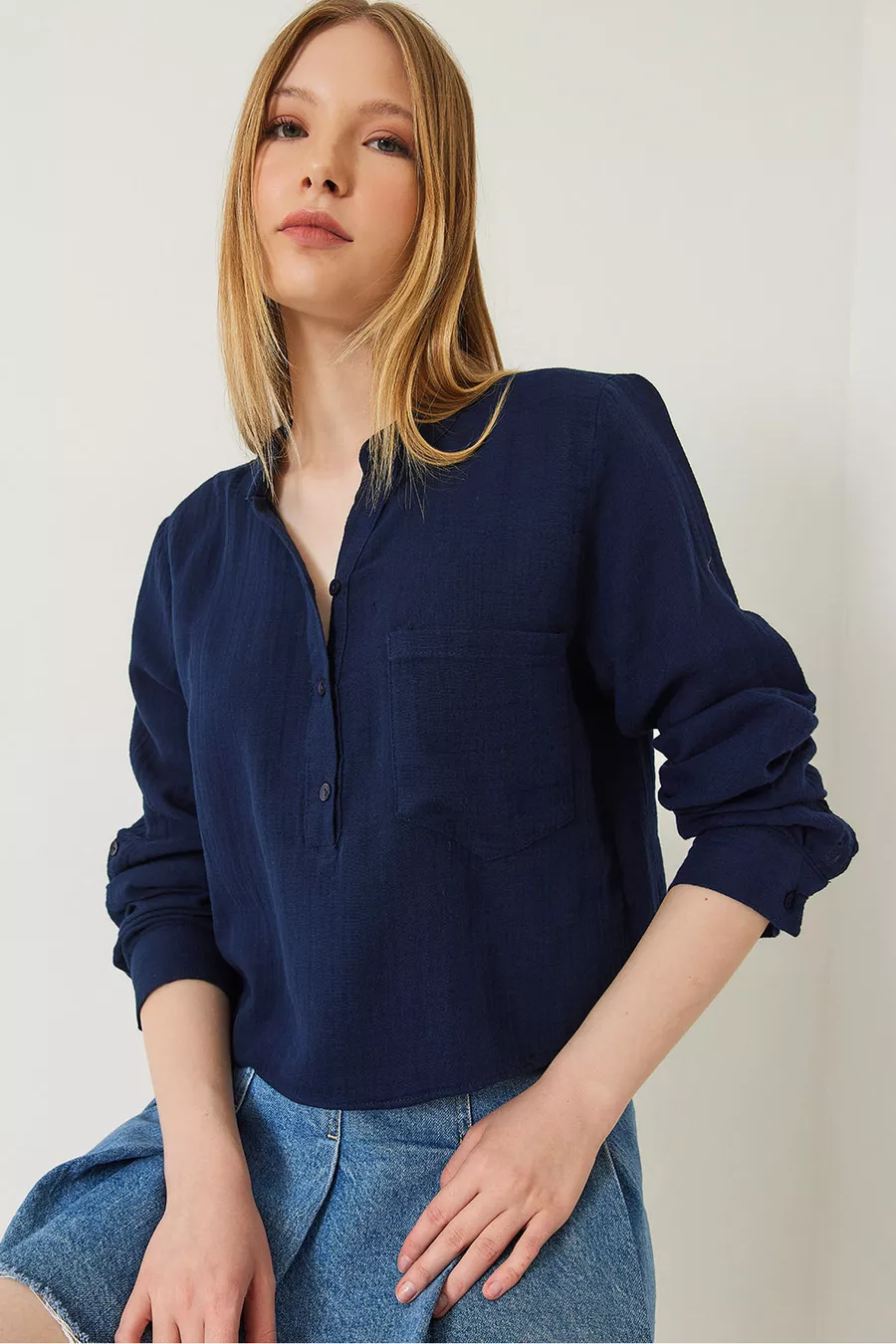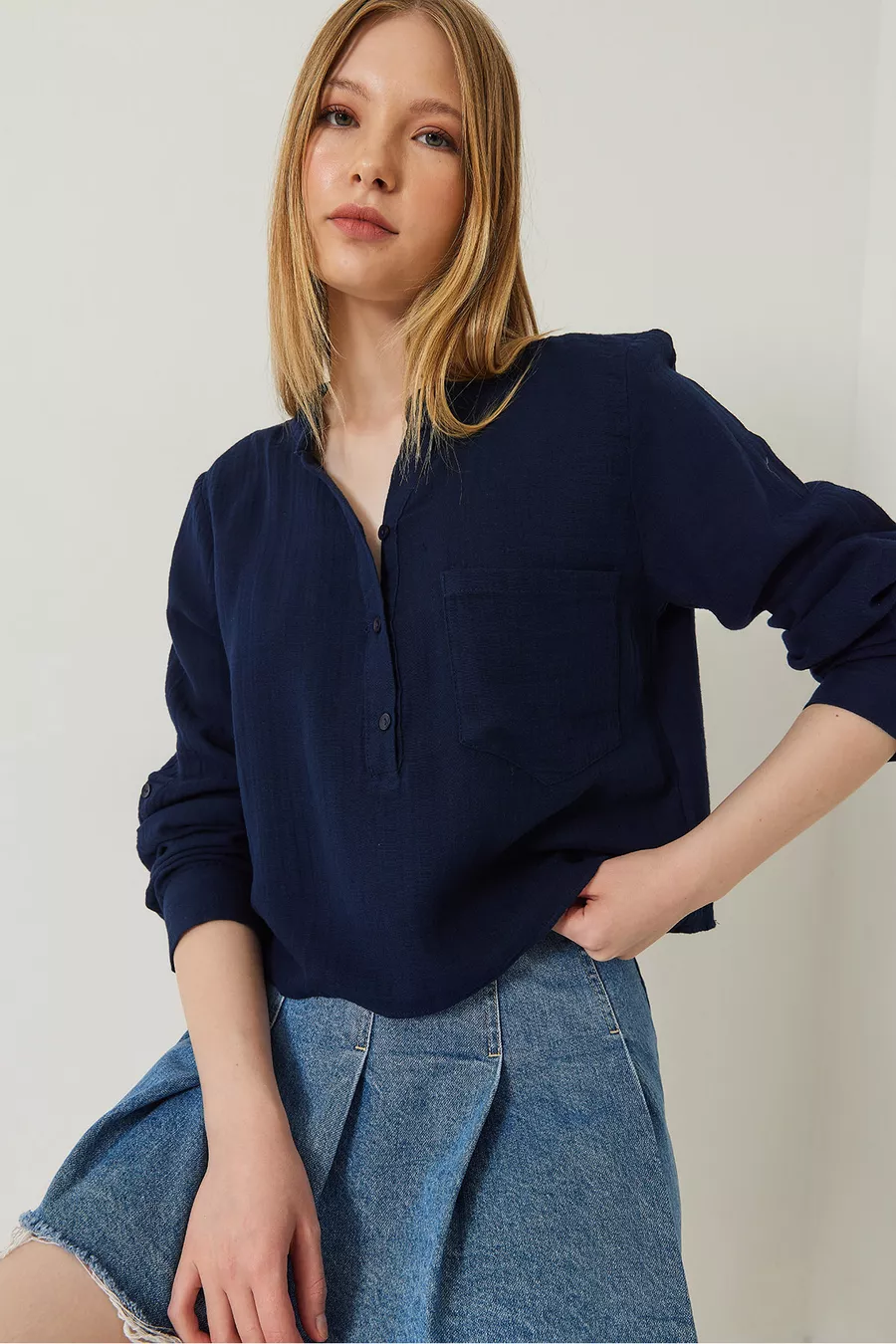 Chemisier en mousseline premium à col officier pour femme
