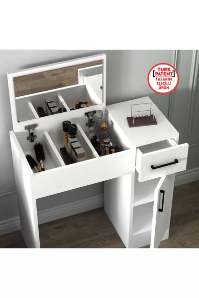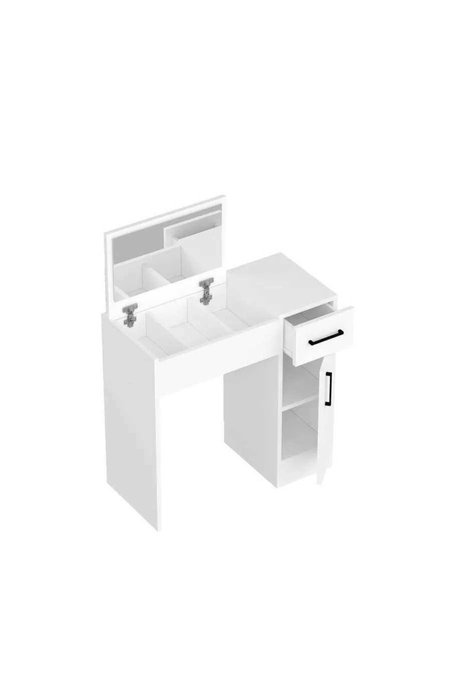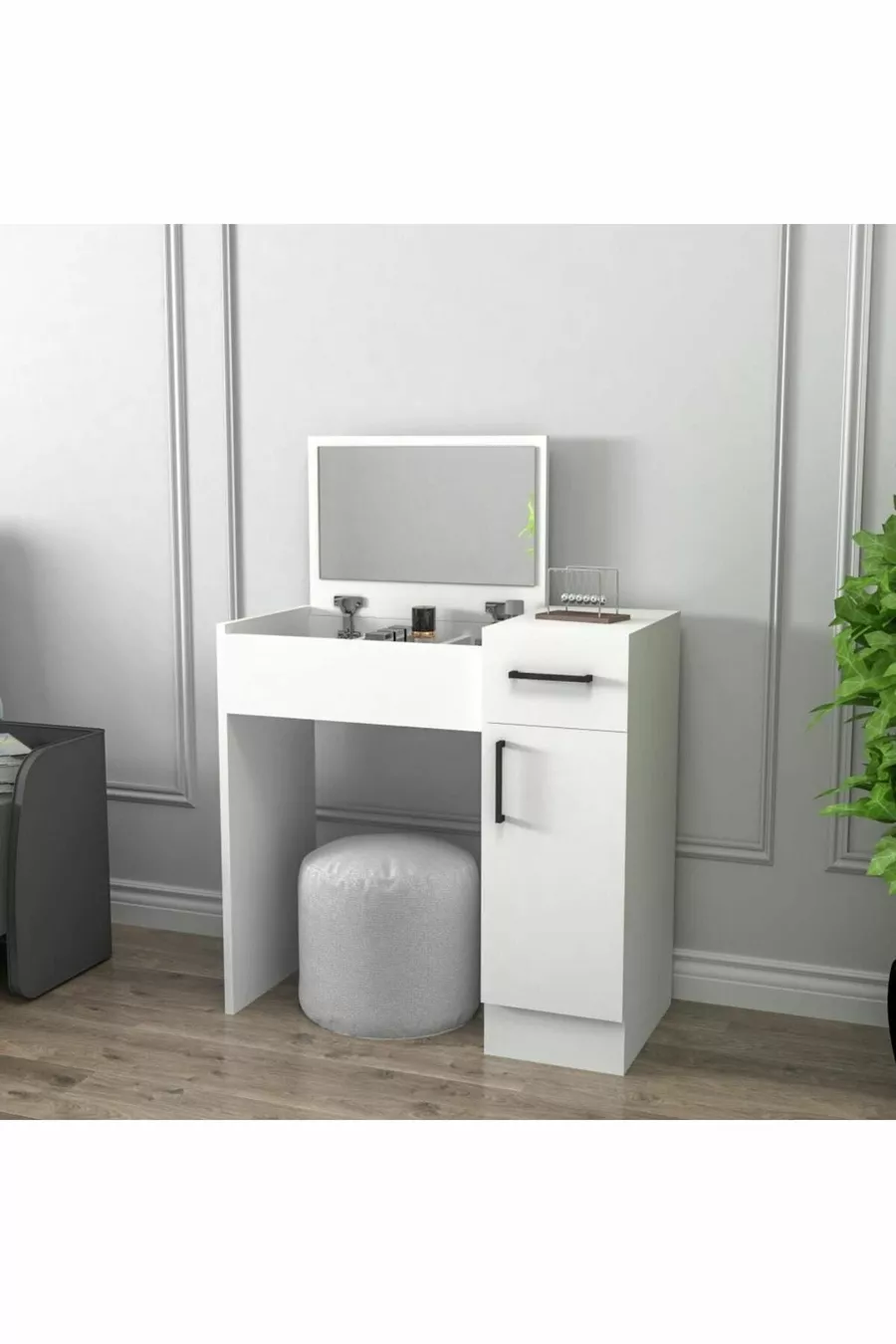 Coiffeuse à miroir blanc perle – Avec tiroirs, armoires et design élégant
