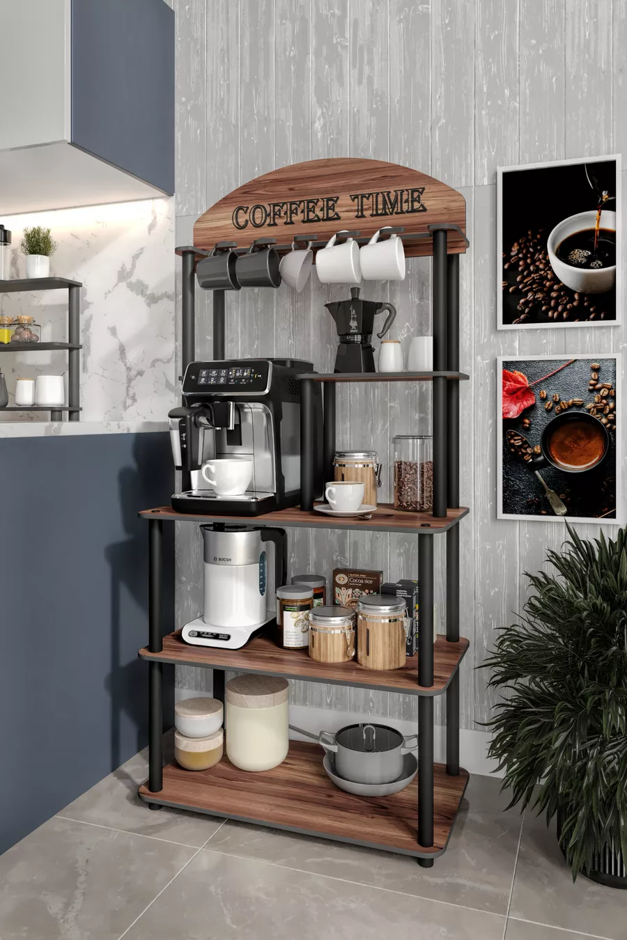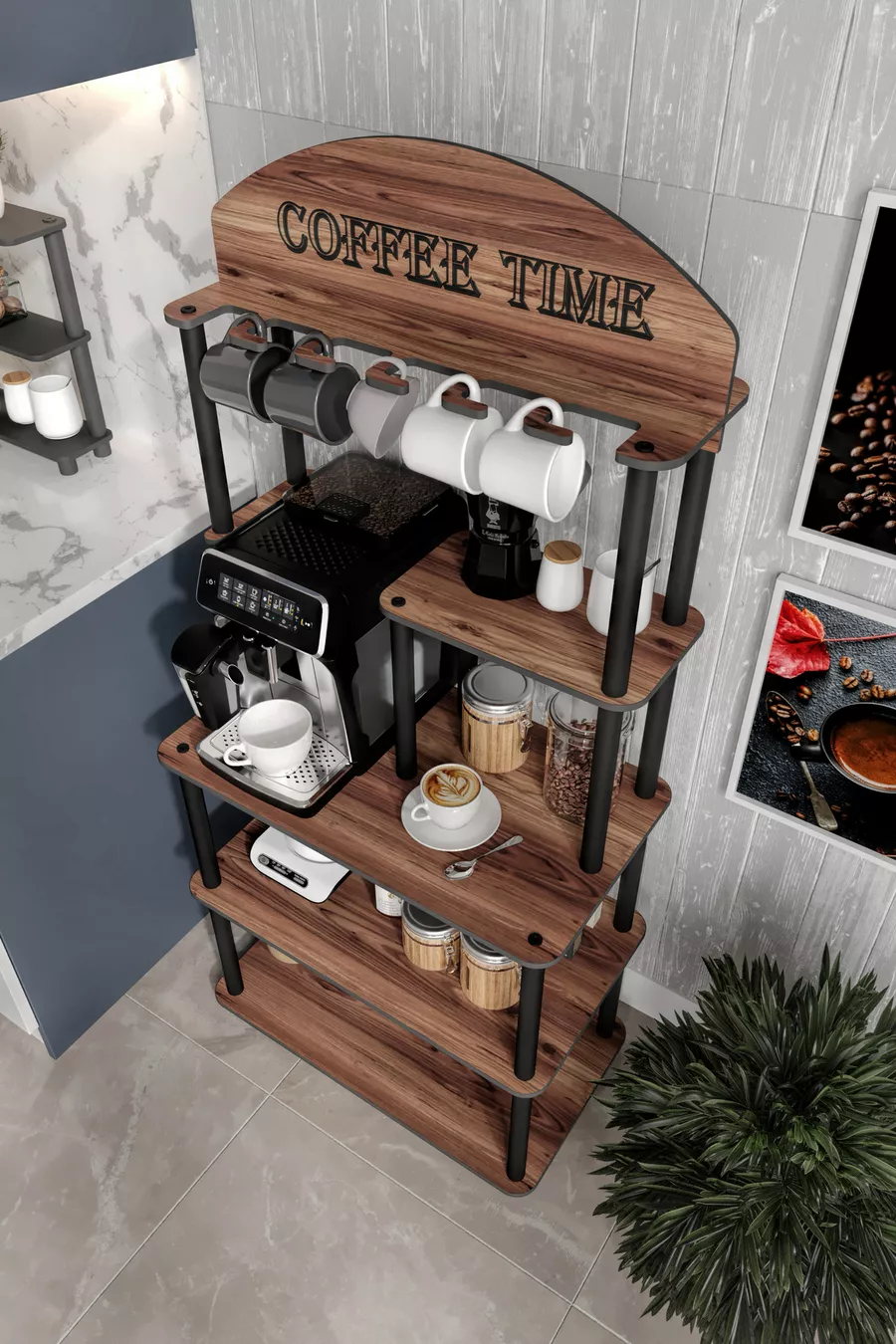 Coin café décoratif multitâche en noyer Madran à étages pour toutes les machines à café, dimensions Cm x Cm