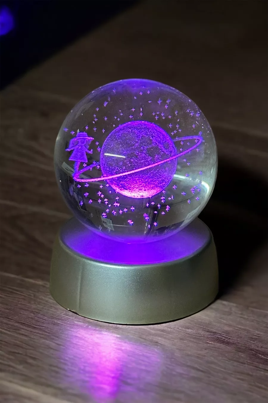 Collier avec boîte, en verre lumineux LED changeant de couleur, Planète Saturne, sphère de fille, lampe lune, cristal, lotus, fleur de camélia