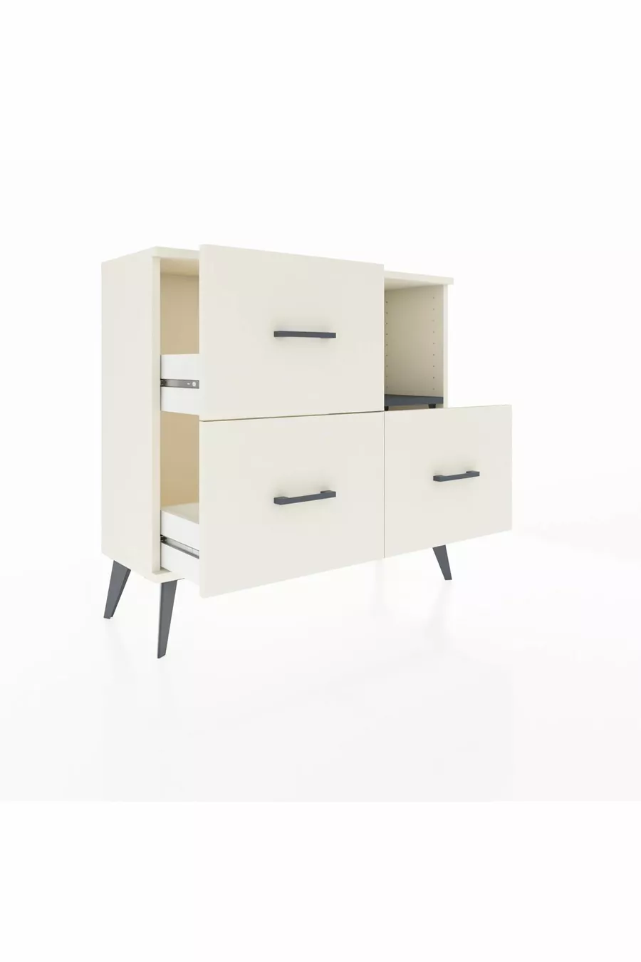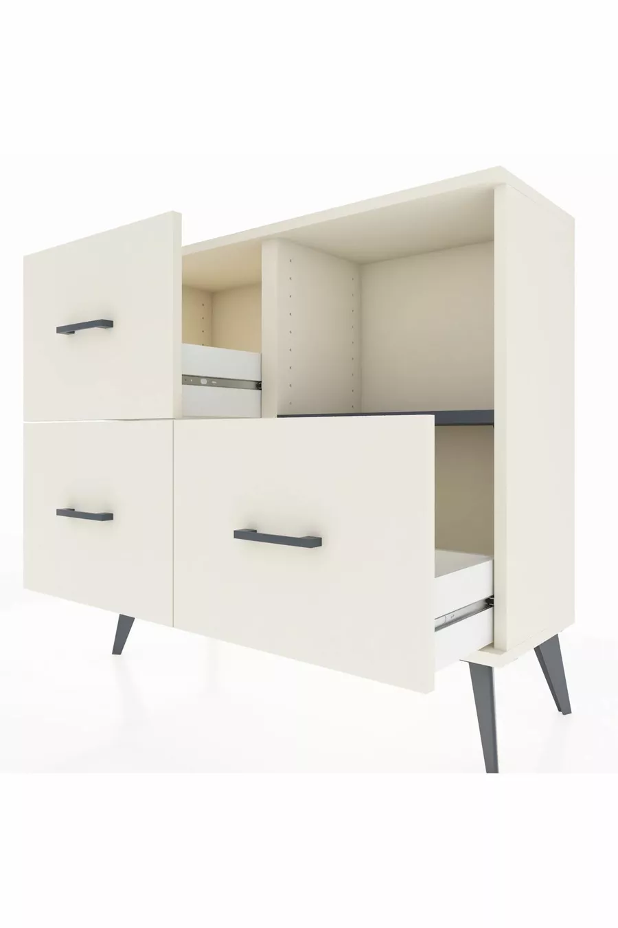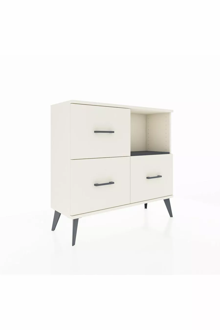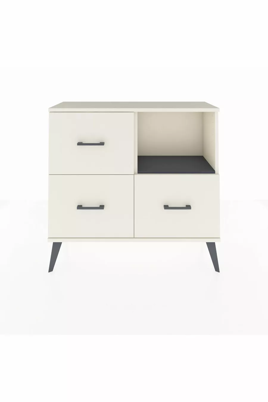 Commode Arges à une étagère et trois tiroirs, couleur quartz-anthracite/quartz