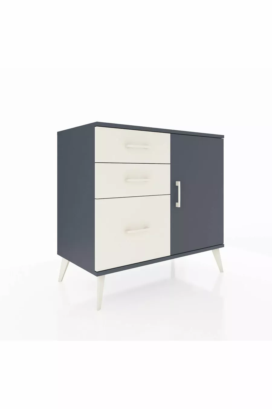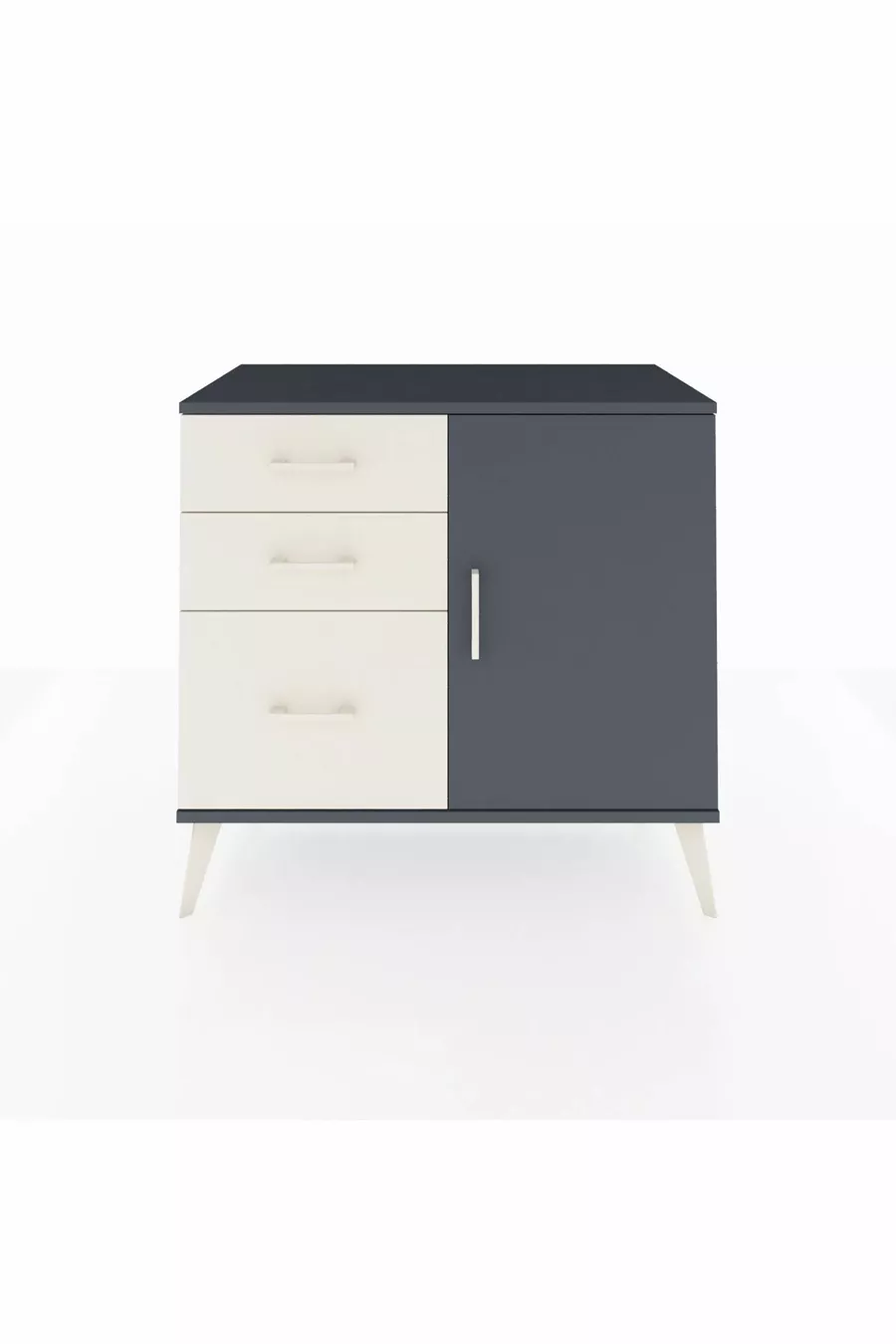 Commode Hyperion avec une seule étagère, 3 tiroirs et une porte, Anthracite-Anthracite/Gris pierre