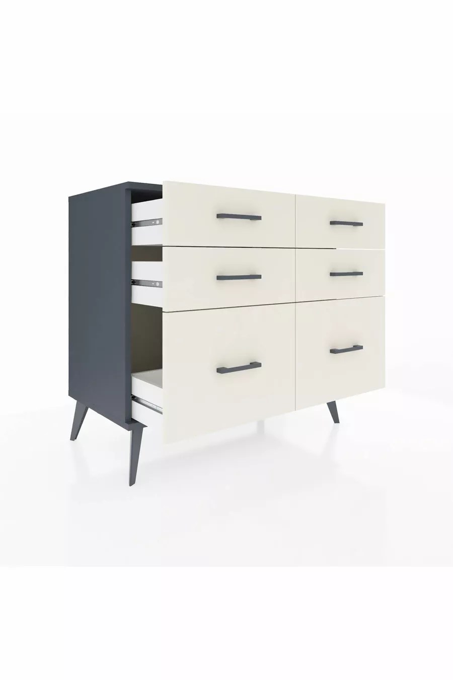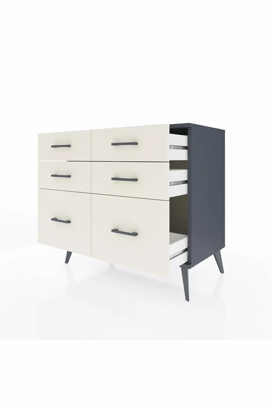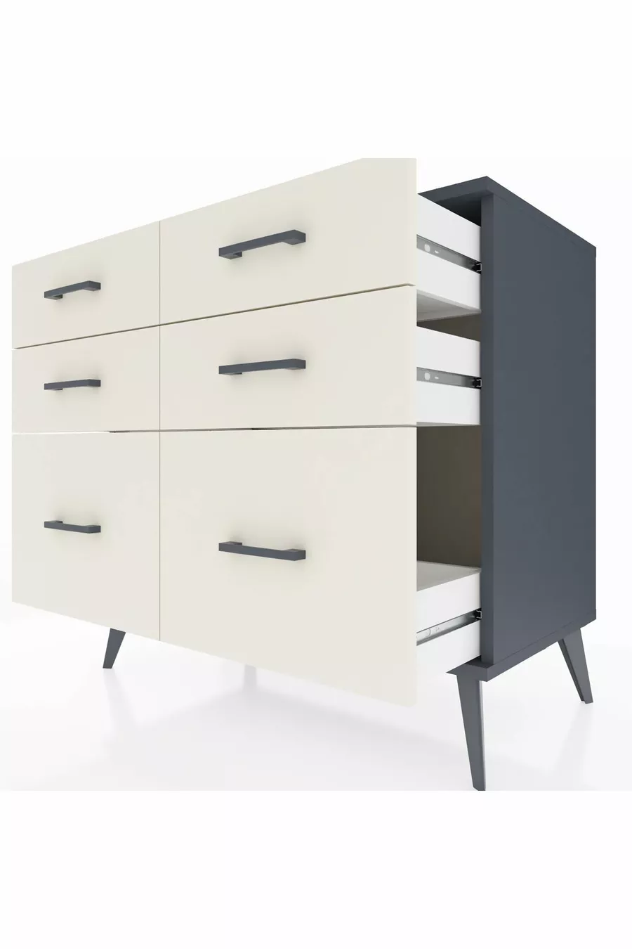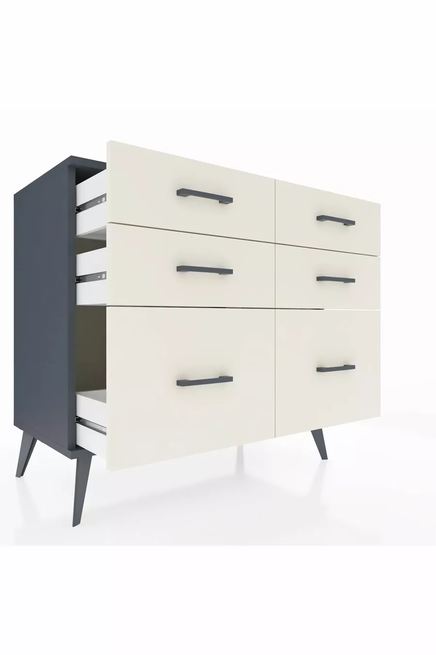 Commode Hyperion 6 tiroirs Anthracite-Anthracite/Pierre de lune