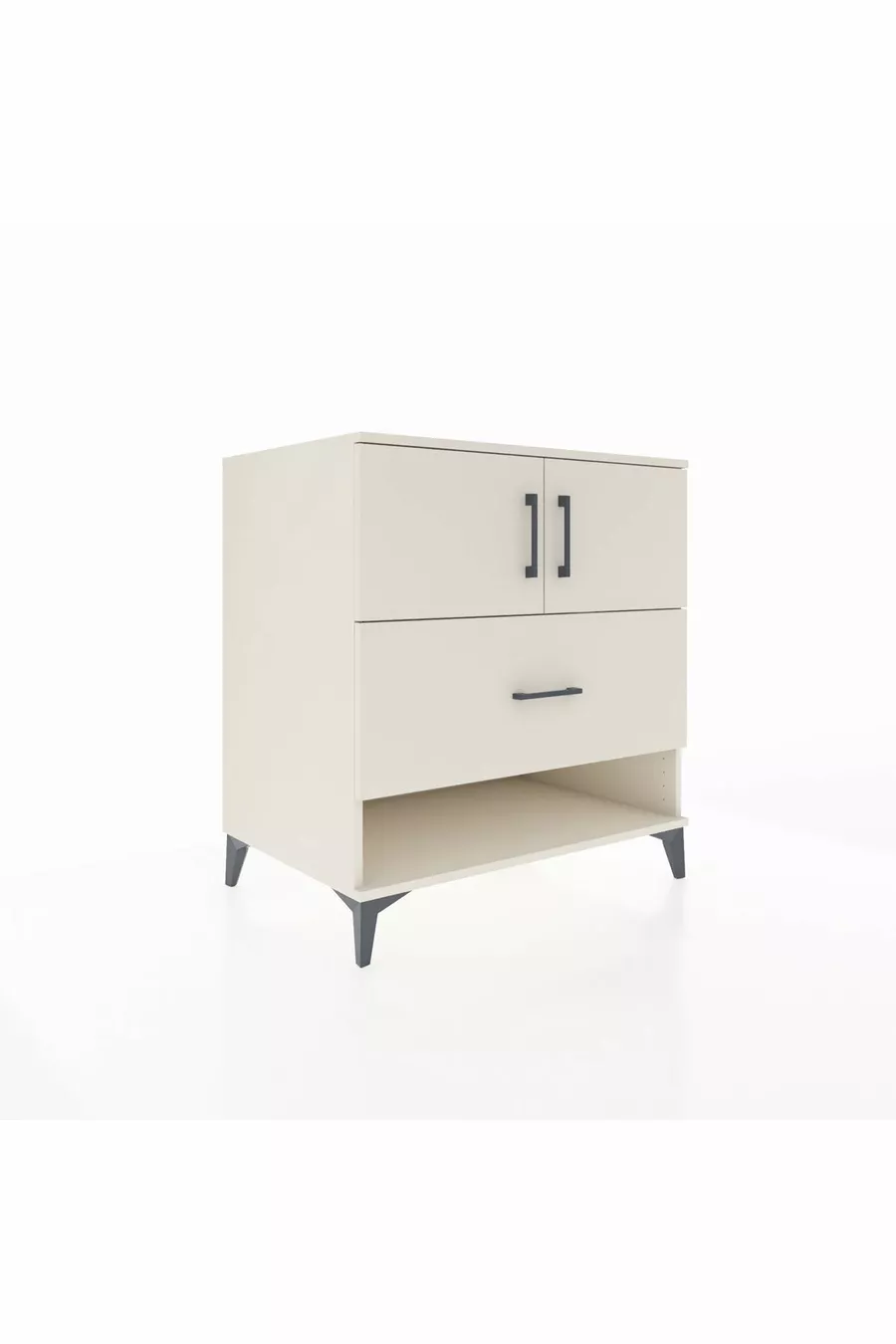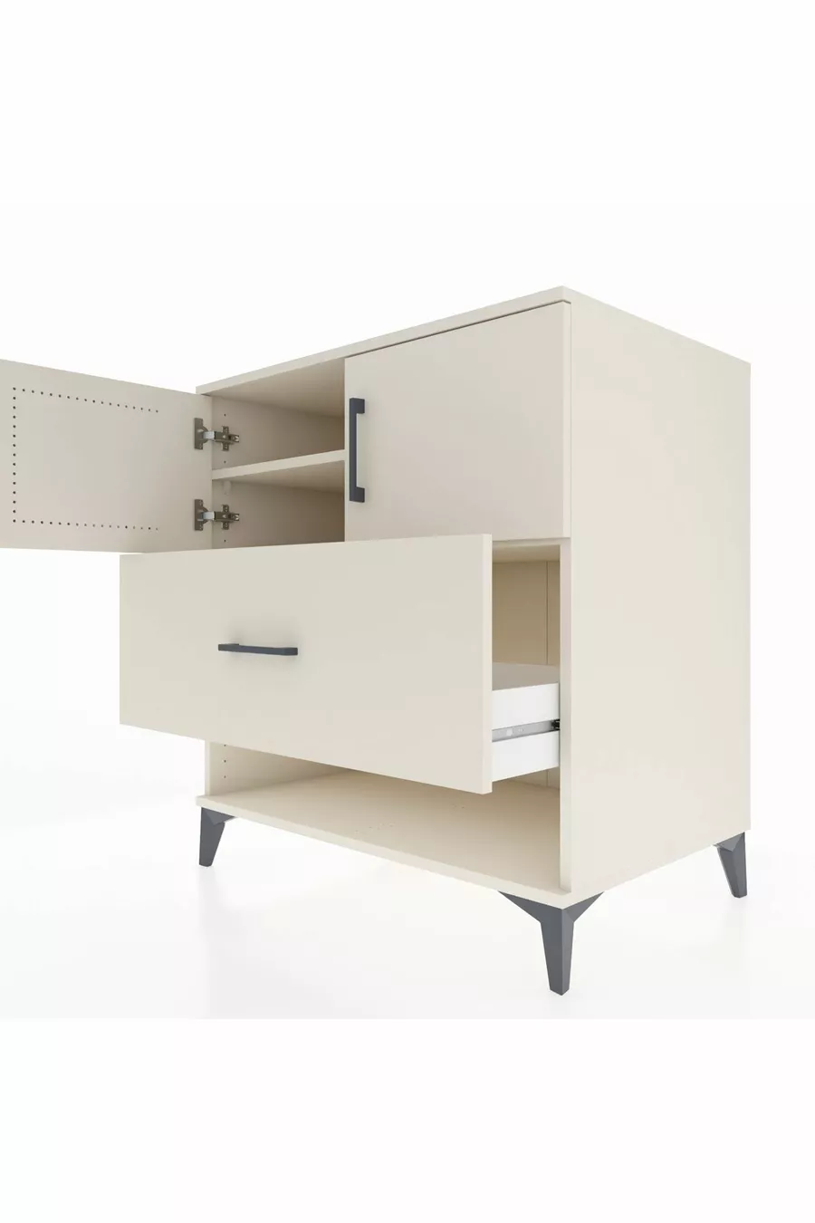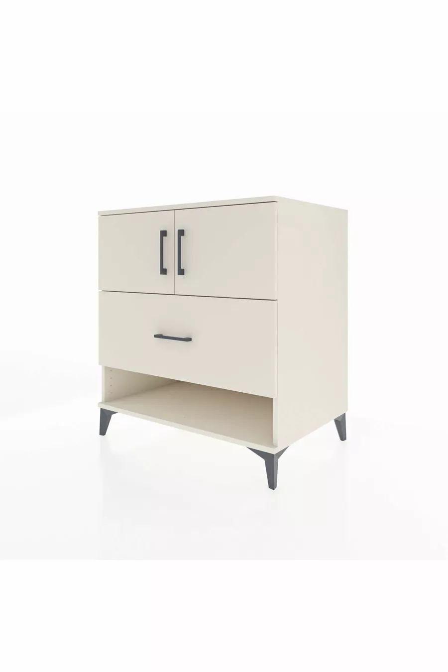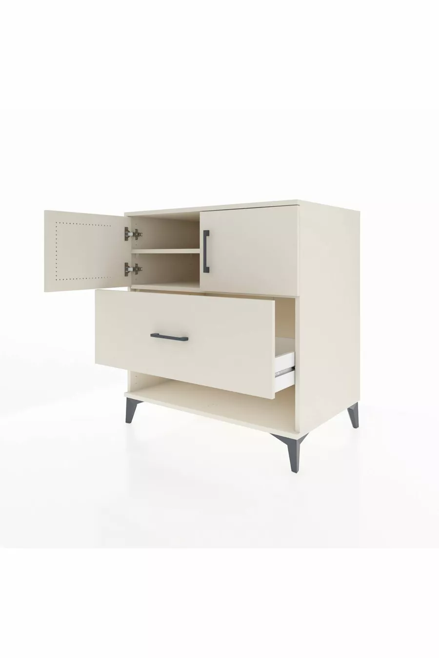 Commode Kronos avec 2 étagères, 1 tiroir et 2 portes, Pierre de Lune-Pier de Lune