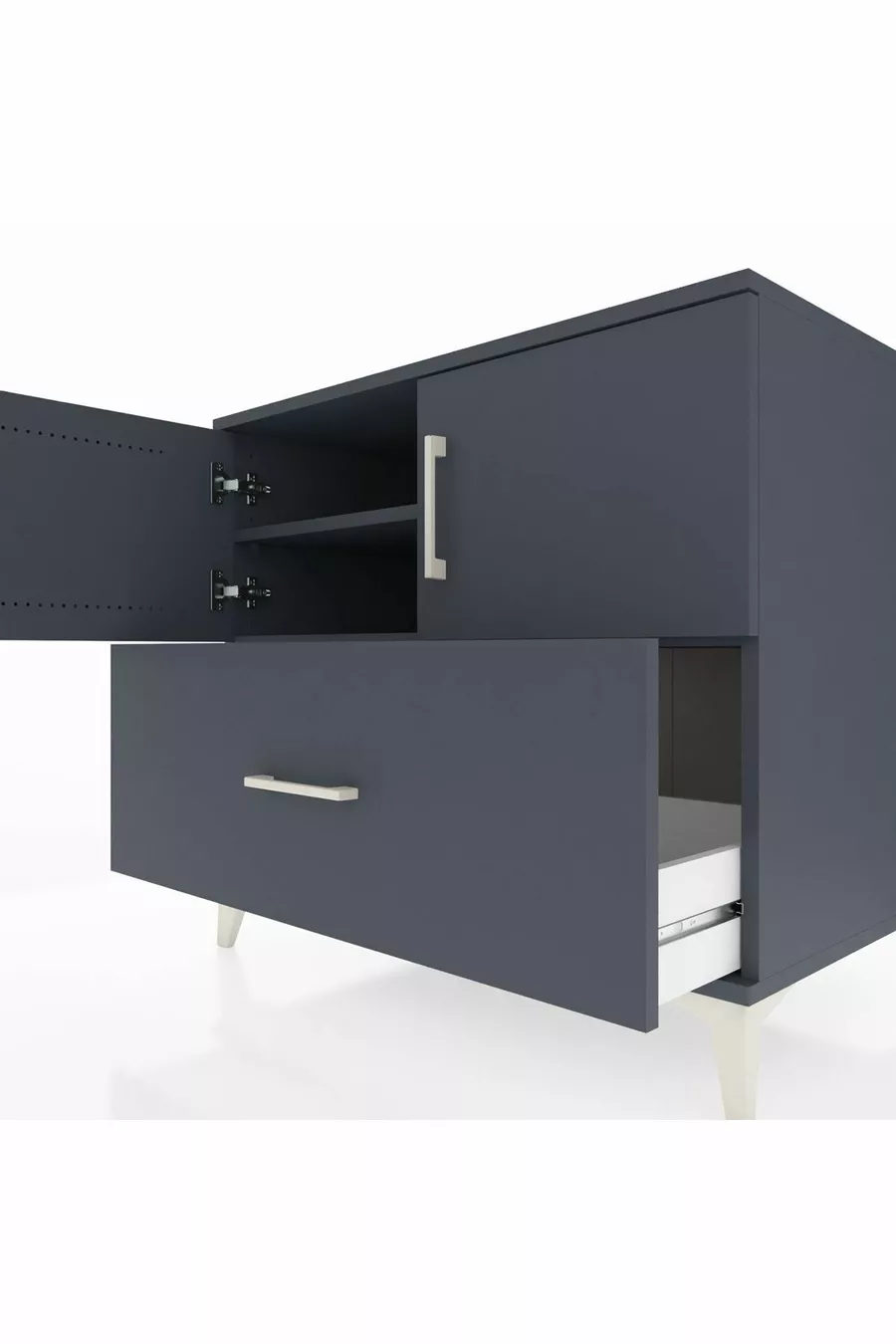 Commode Kronos avec 2 étagères, 1 tiroir et 2 portes, Anthracite-Anthracite