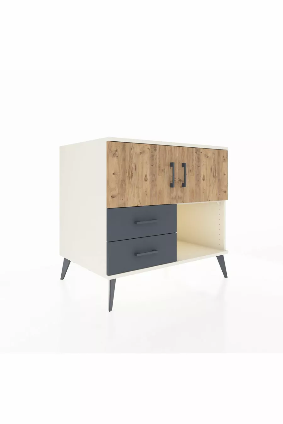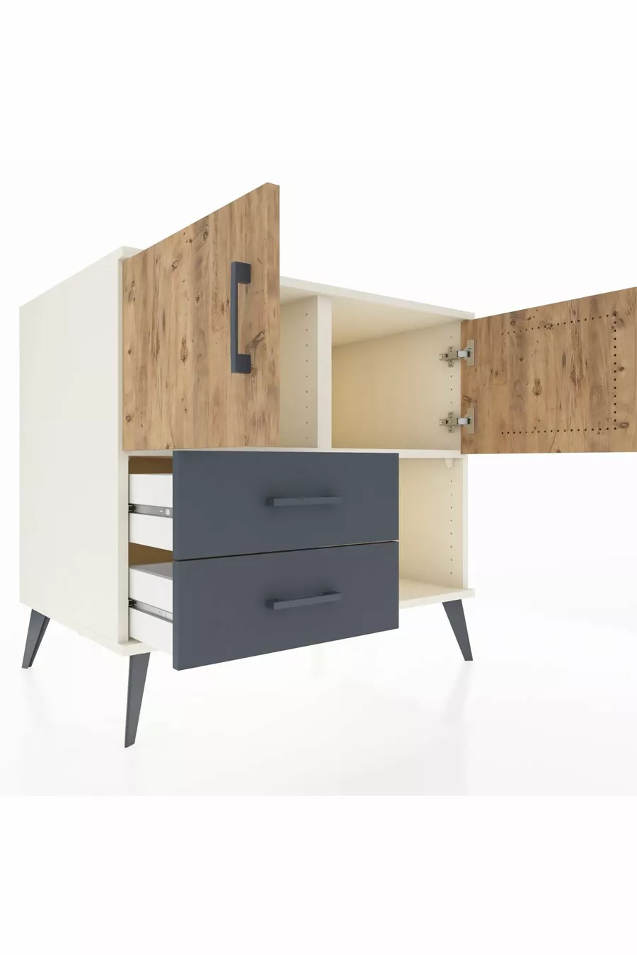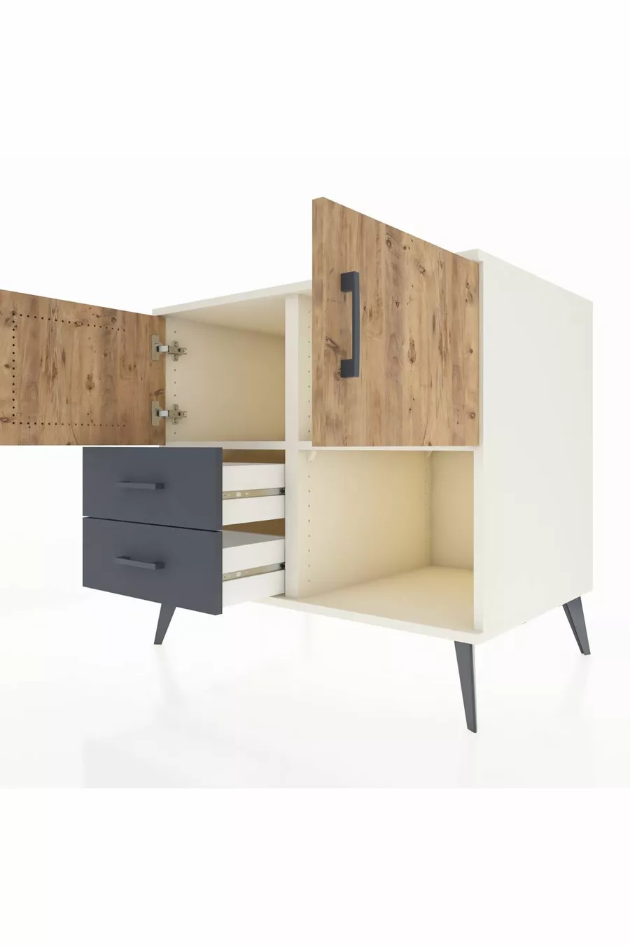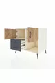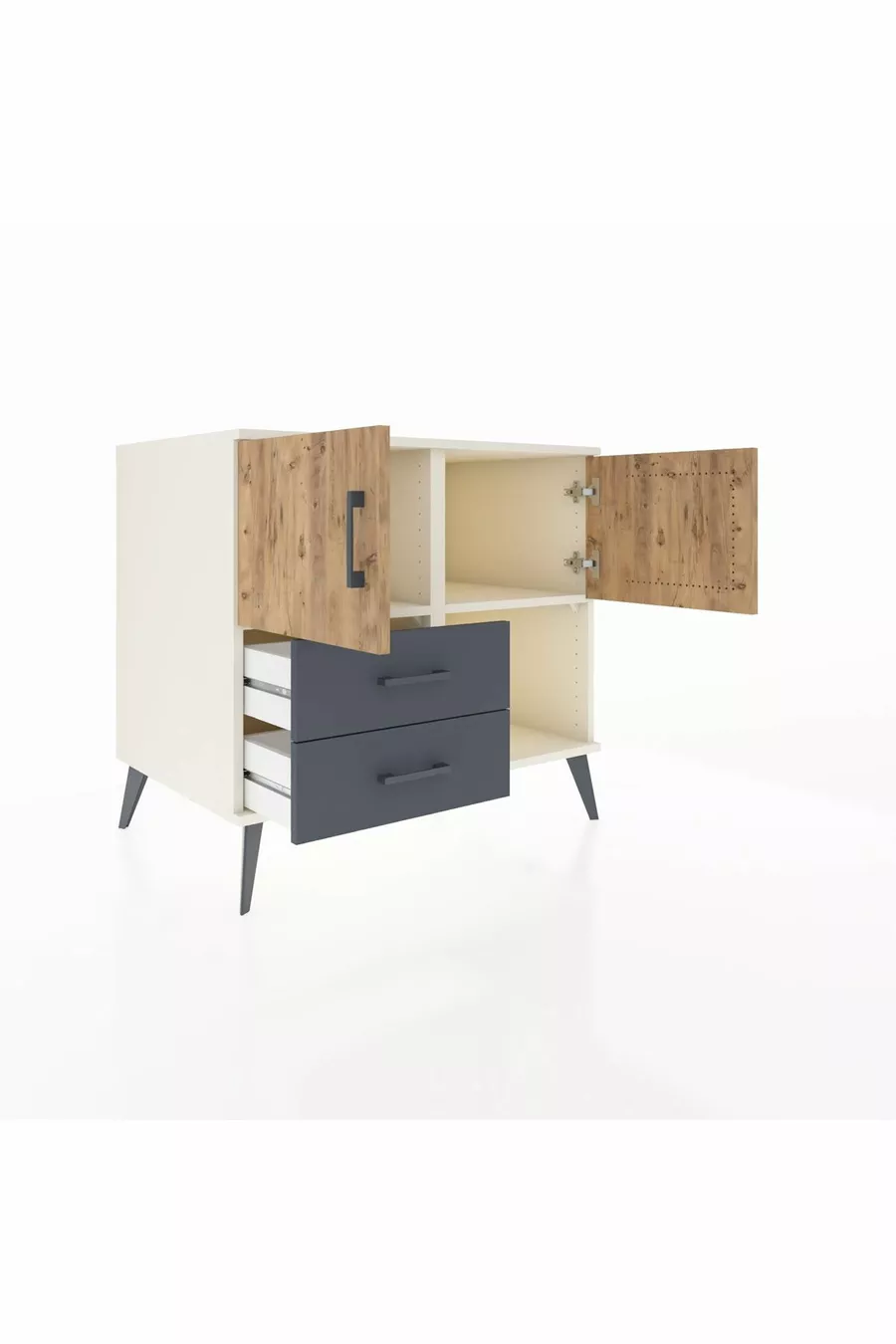 Commode Kronos avec 2 étagères, 2 tiroirs et 2 portes, Pierre de Lune-Pin/Anthracite
