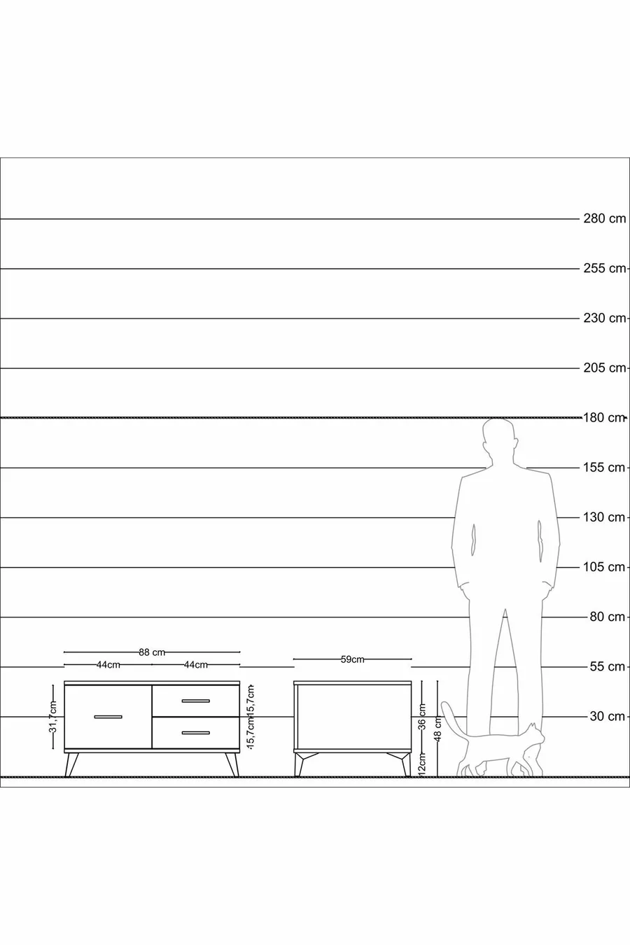Couleur : Blanc Matériau : Aggloméré Hauteur : 48 cm Largeur : 88 cm Profondeur : 59 cm Nombre de tiroirs : 3 Caractéristique du produit : Avec porte Style : Moderne Thème / Style : Moderne Origine : TR