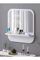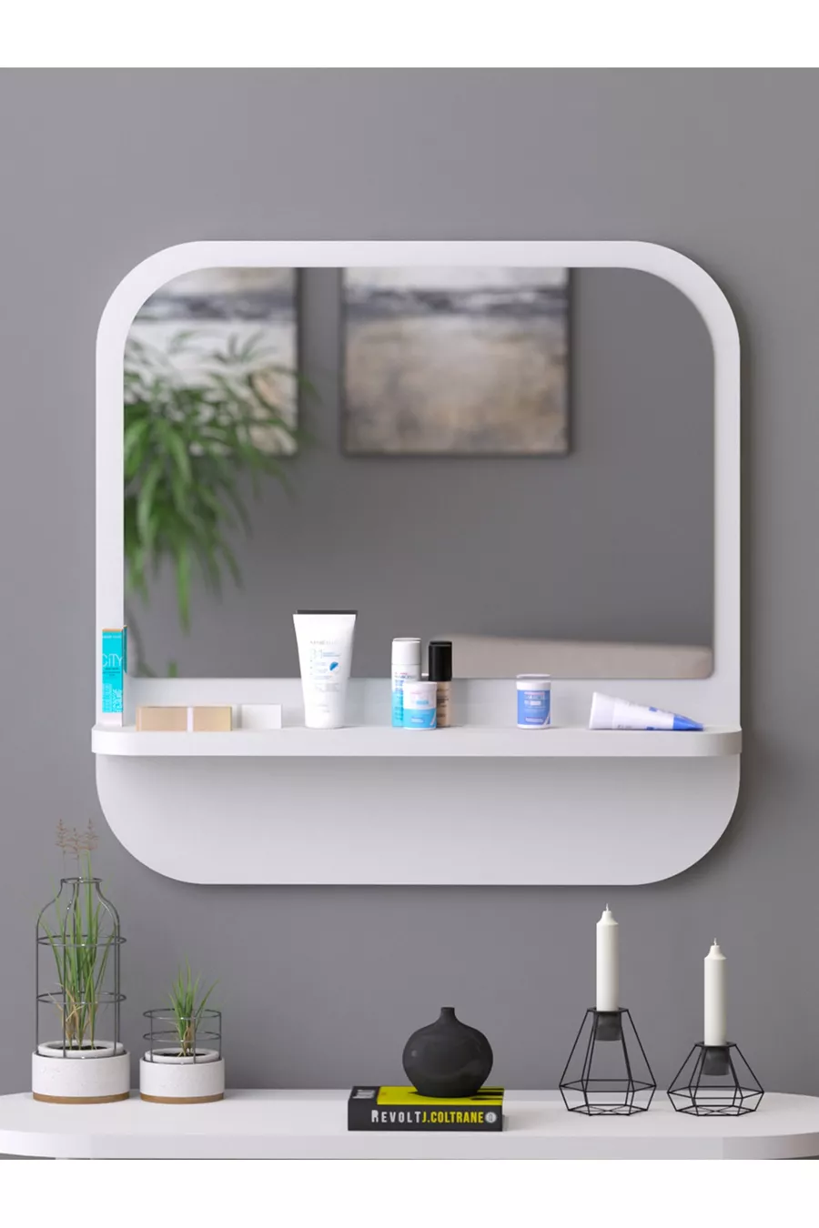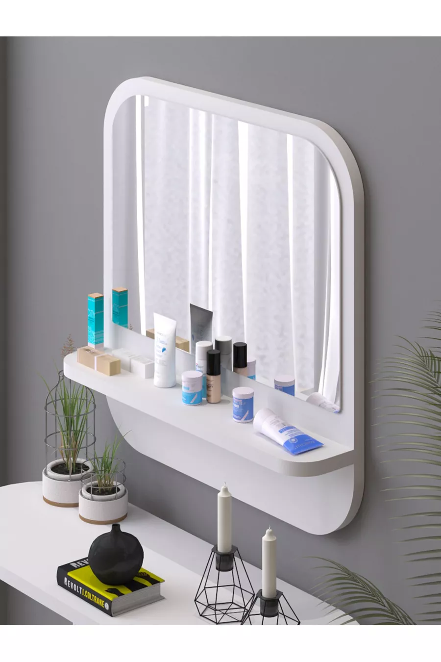Matériau : Verre Couleur : Blanc Nombre de pièces : 1 pièce Forme : Carré Type : Miroir de maquillage Caractéristique : Avec étagère