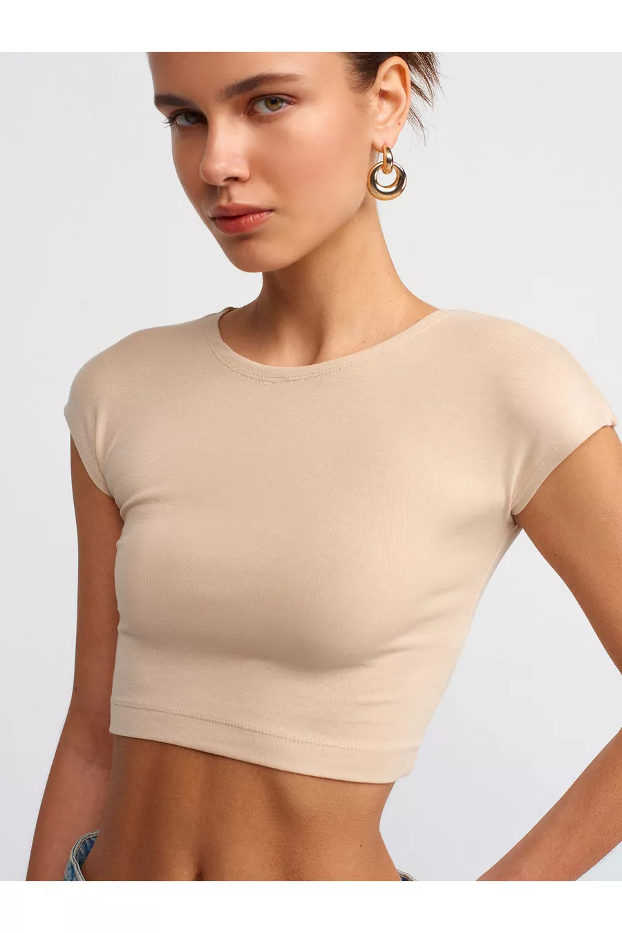 Crop top en mélange de coton et modal - Beige clair