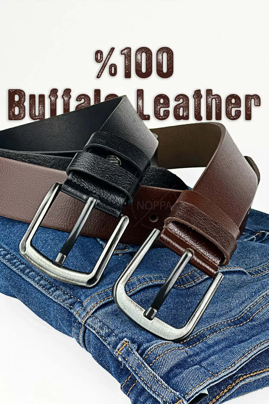 Cuir de buffle véritable Sport Noir et marron Homme Lot de 2 Ceinture en cuir Denim Véritable Ceinture en cuir véritable pour homme