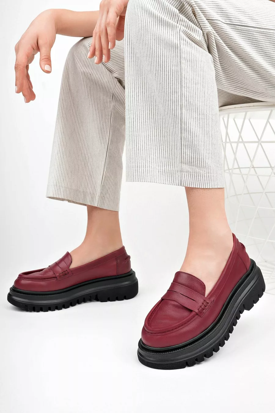 Cuir véritable Bourgogne Femmes Casual Semelle Épaisse Mocassins Chaussures De Mocassins