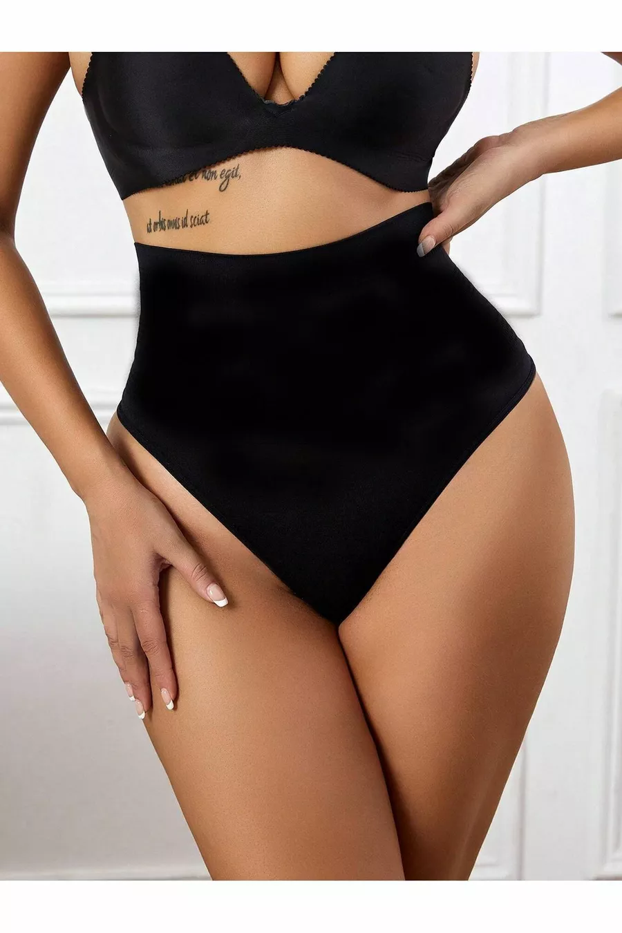 Culotte string taille haute modèle Montela, gainante pour le ventre, couleur noire
