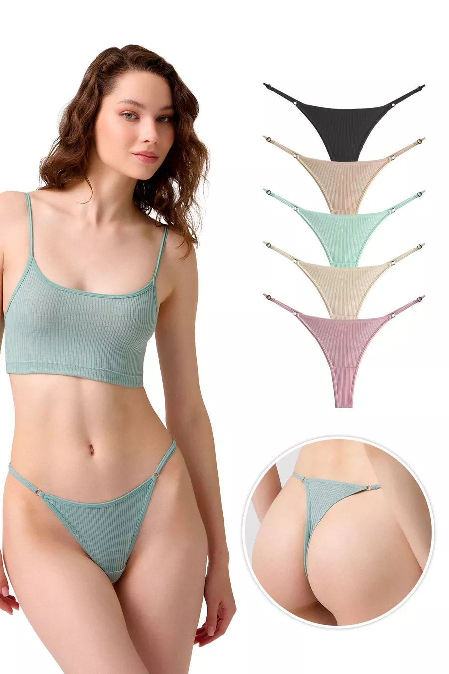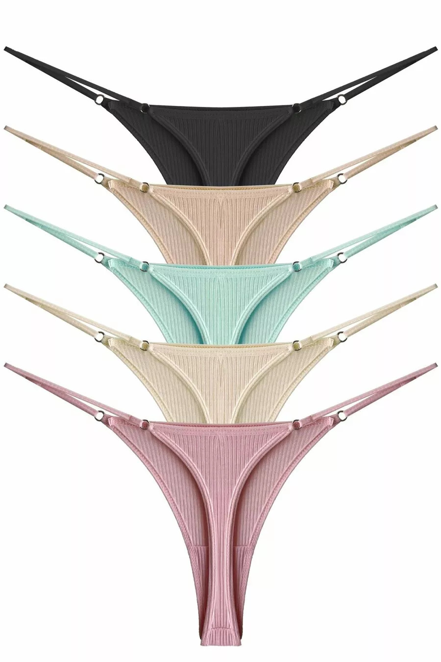 Matériau : Mélange de polyamide Couleur : Multicolore Motif : Uni Coupe : Tanga Composition du matériau : 95 % coton, 5 % élasthanne Instructions de lavage : Type 3 Type de tissu : Tricot Taille : Élastique Environnement : Lounge/Domicile Caractéristique supplémentaire : Taille ajustable Détail sur la durabilité : Non Contenu de l'emballage : Lot de 5 Détail du produit : Élastique Origine : TR