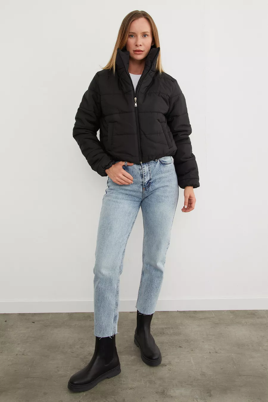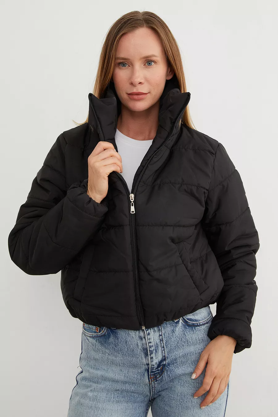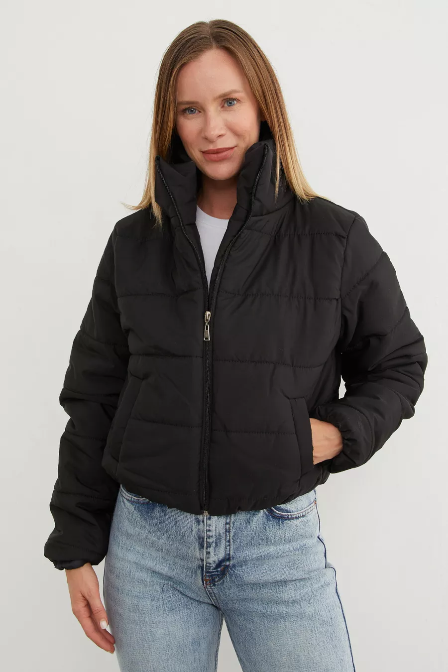 Doudoune courte à taille élastique