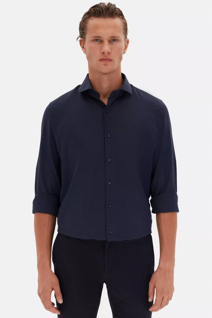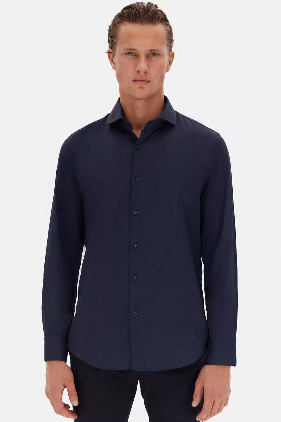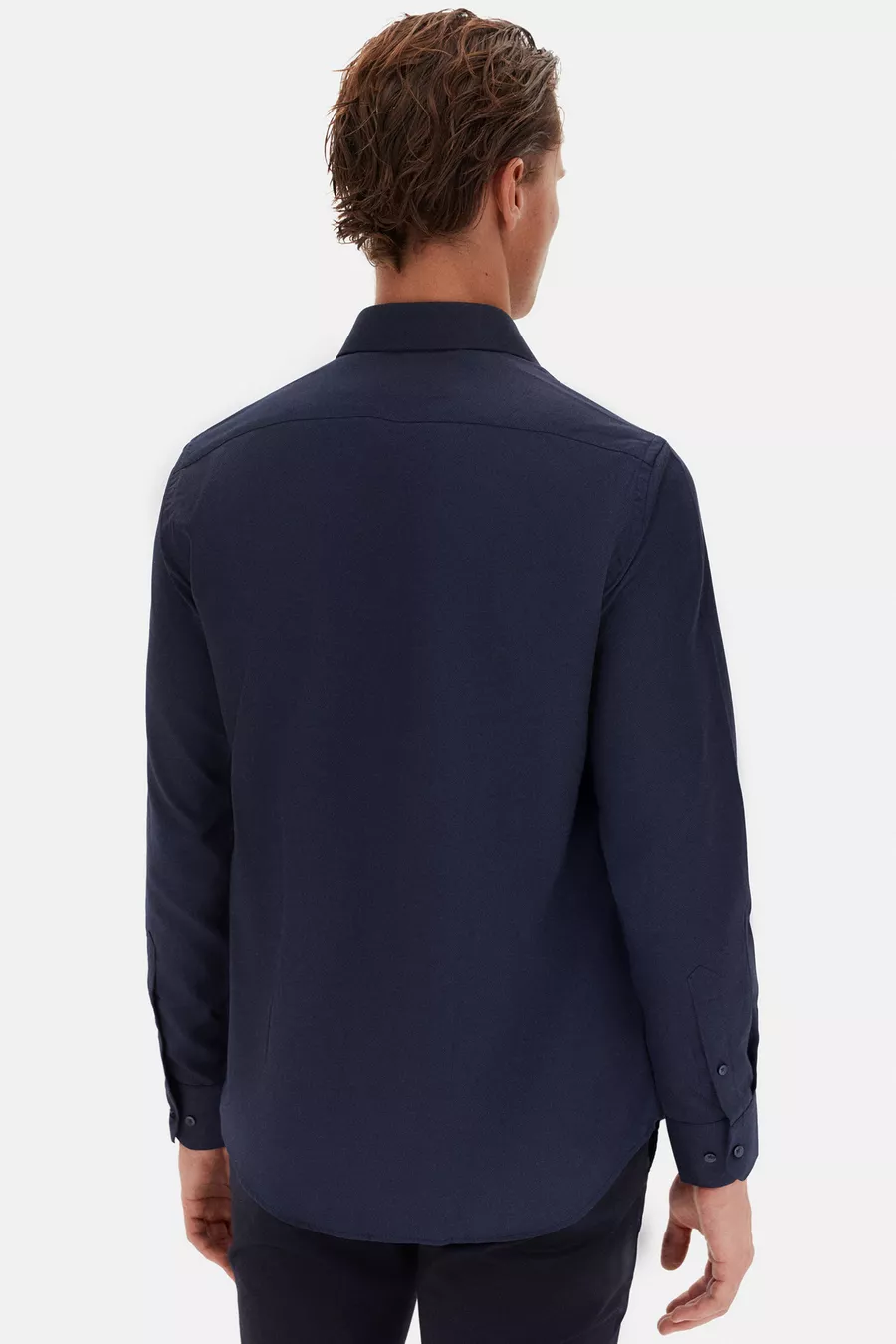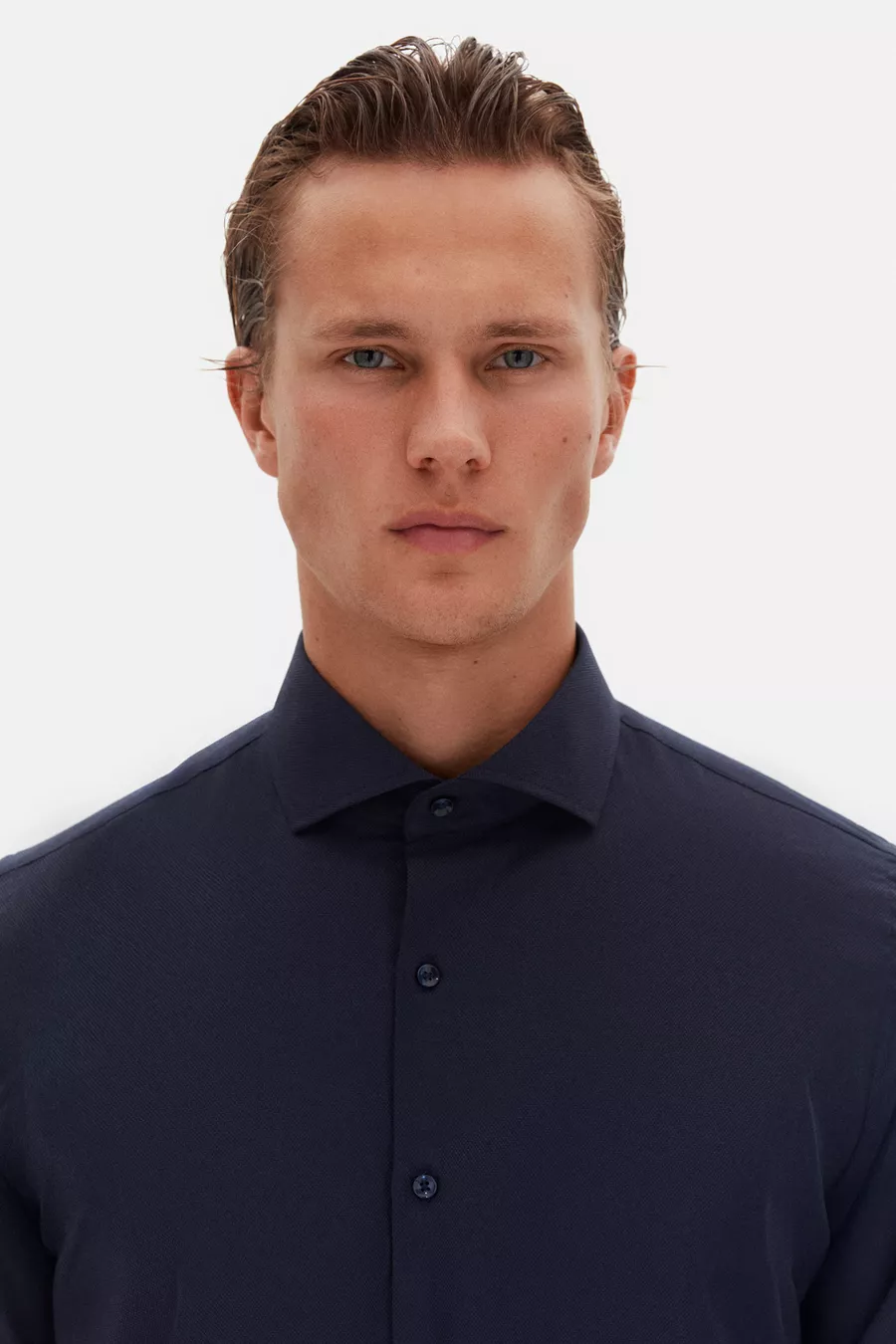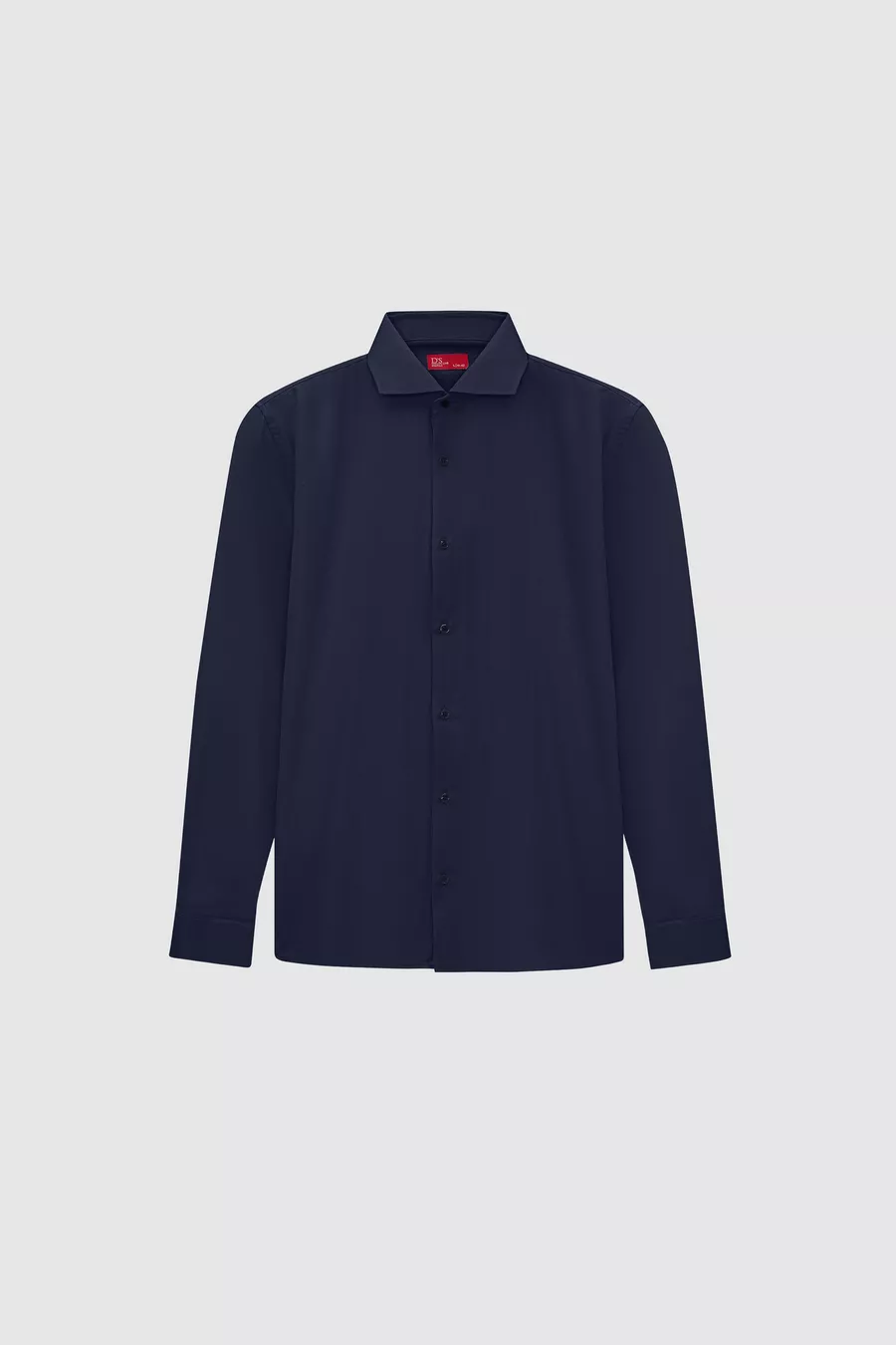 Ds Damat Slim Fit Bleu Marine Col Italien Armuré Manches Longues Facile à Repasser Respirant Quatre