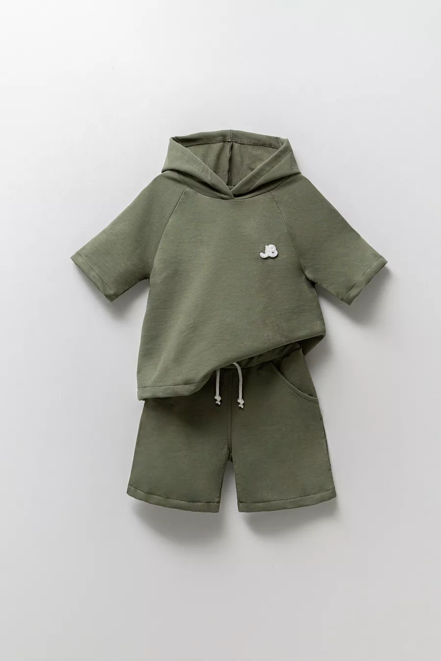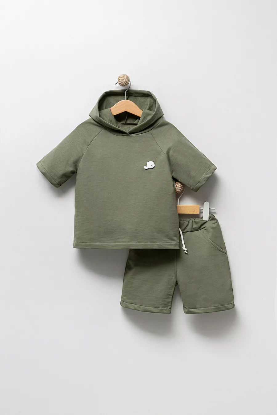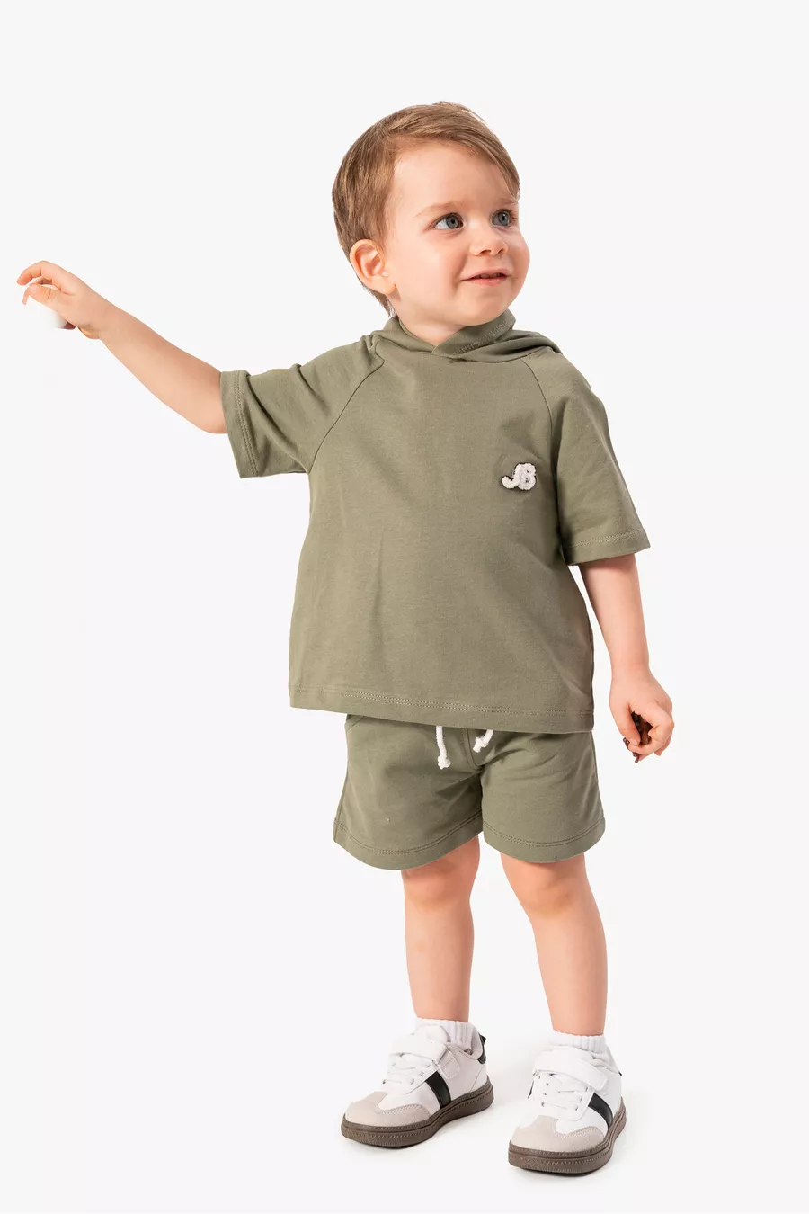 Ensemble 2 pièces pour bébé garçon : T-shirt à capuche à manches courtes et short