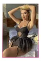Ensemble 4 pièces fantaisie avec jarretelles, dentelle noire et chaînes