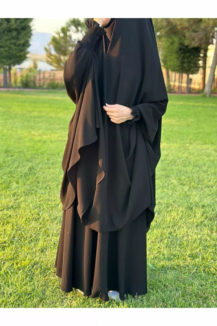 Ensemble afghan à tête voilée à aiguilles en SOIE DE MÉDINE