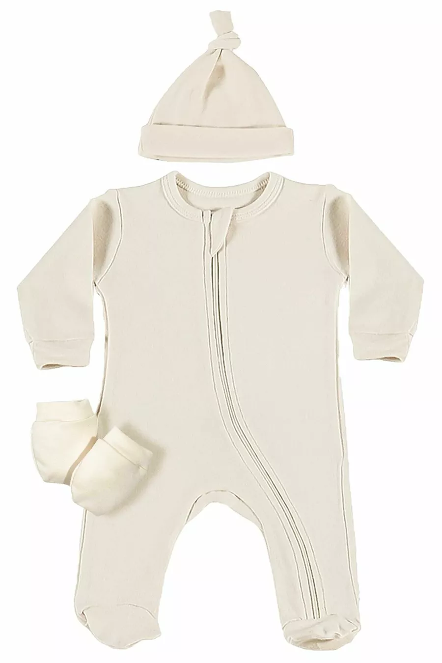 Ensemble cadeau de sortie de maternité pour nouveau-né Pure 3 pièces, grenouillère à manches longues en coton avec boutons pression, mini taille, en coton