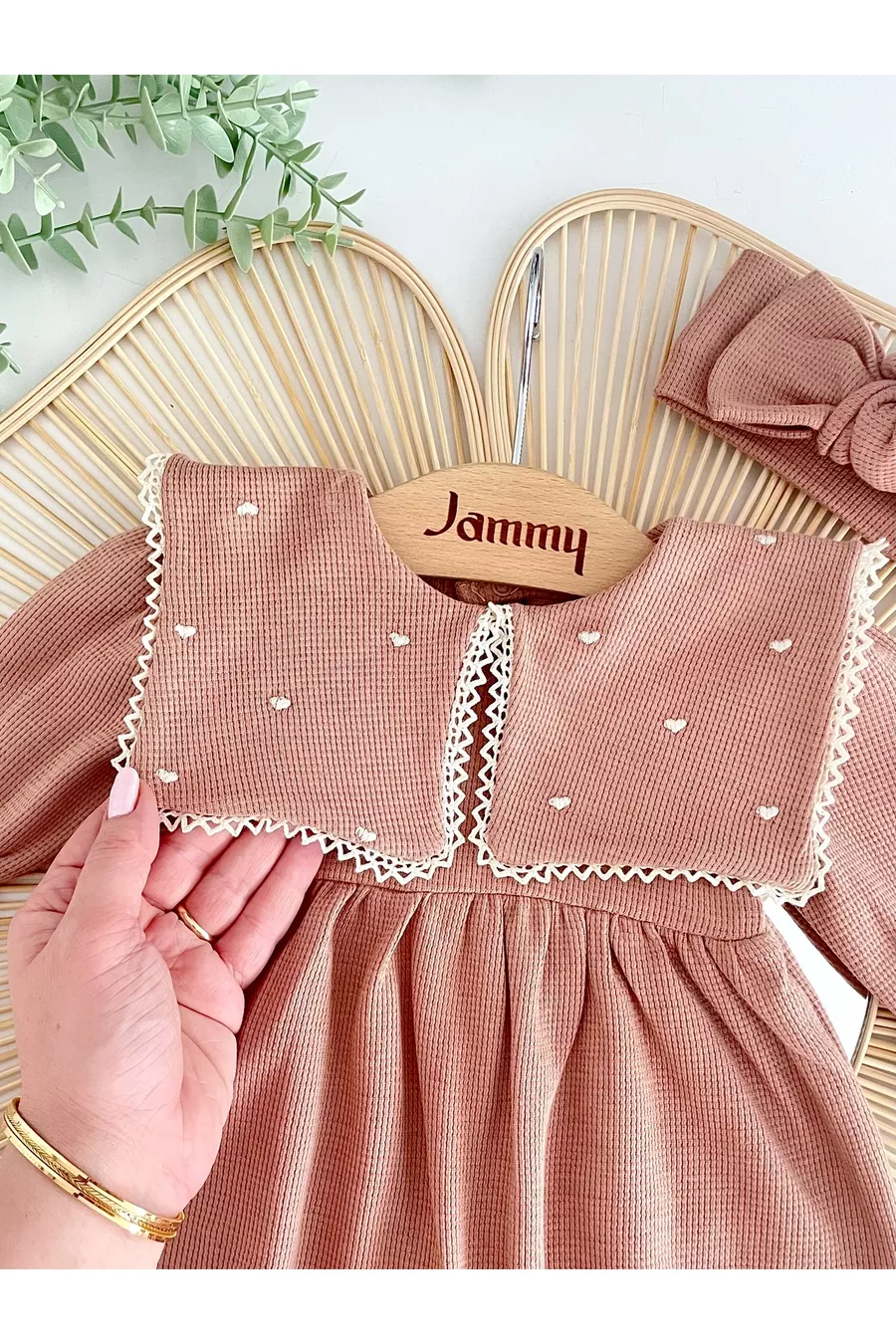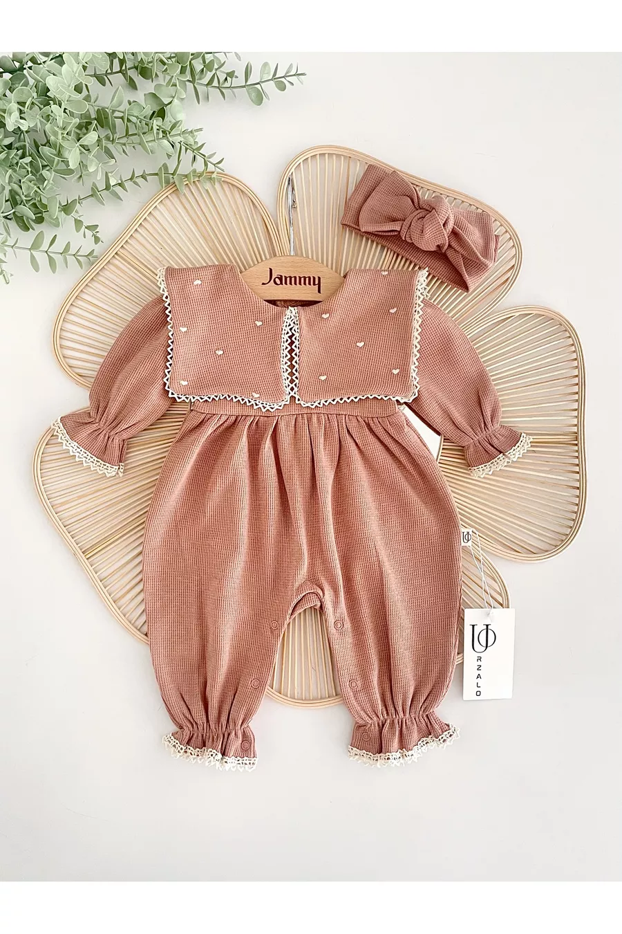 Ensemble Combinaison Tulum et Bandana Maita avec Col en Mouchoir Carré et Broderie Cœur en Waffle, % Coton