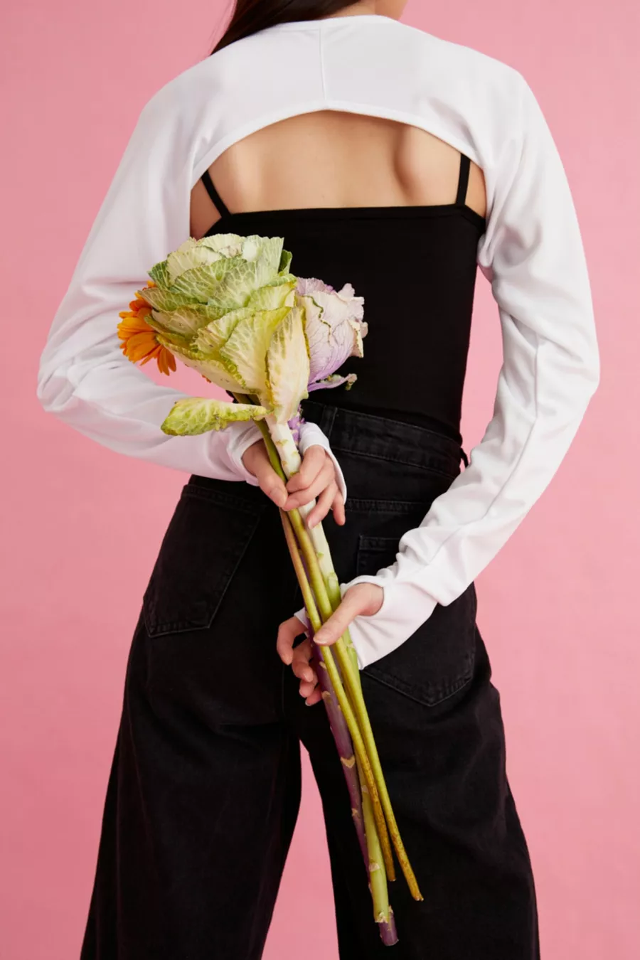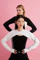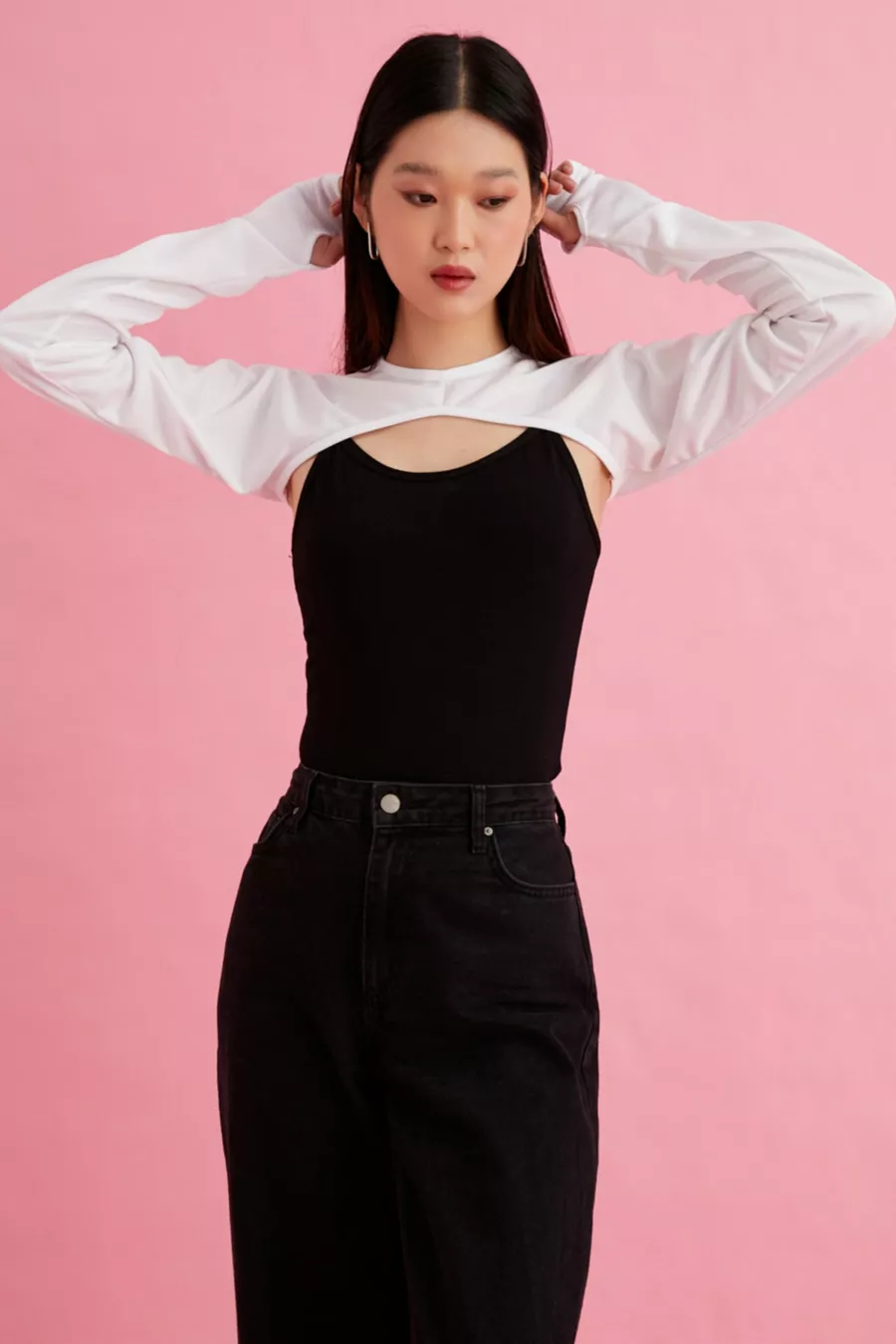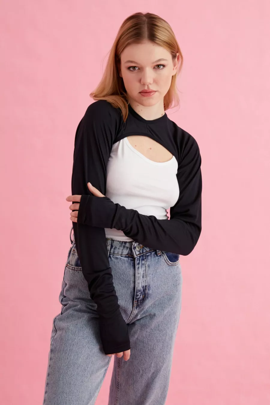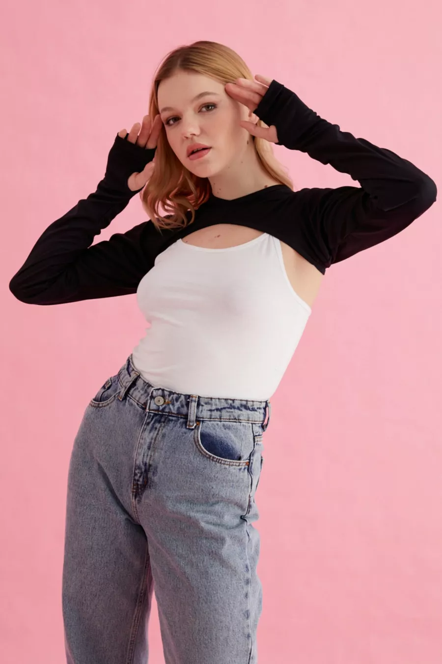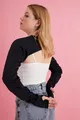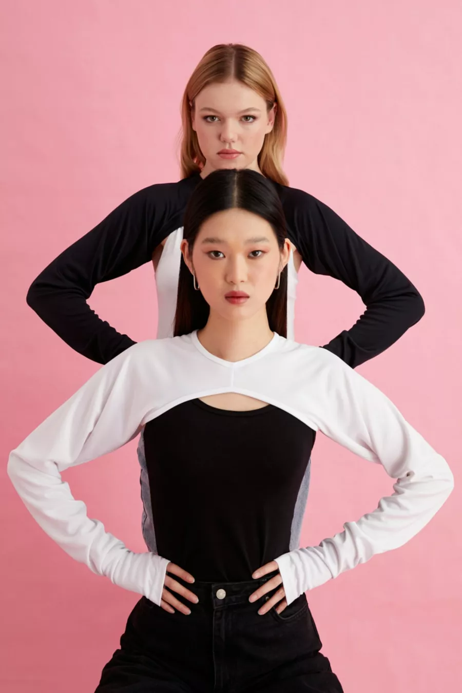 Ensemble Crop à Manches avec Collier à Deux Pièces - Body Crop à Manches Longues Noir et Blanc, Body de Voile