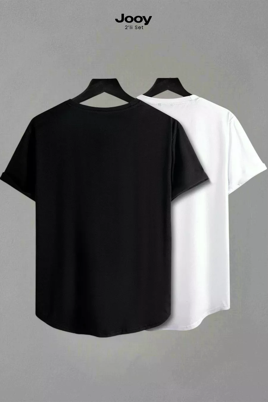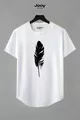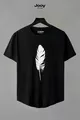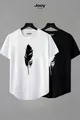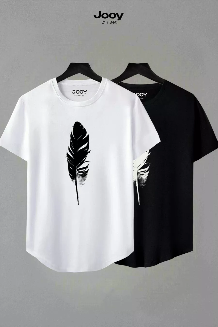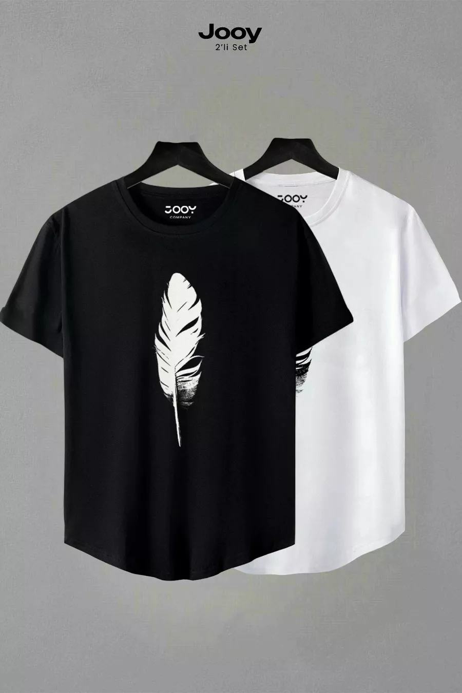 Ensemble de deux t-shirts unisexes noirs et blancs à motif plume avec coupe ovale