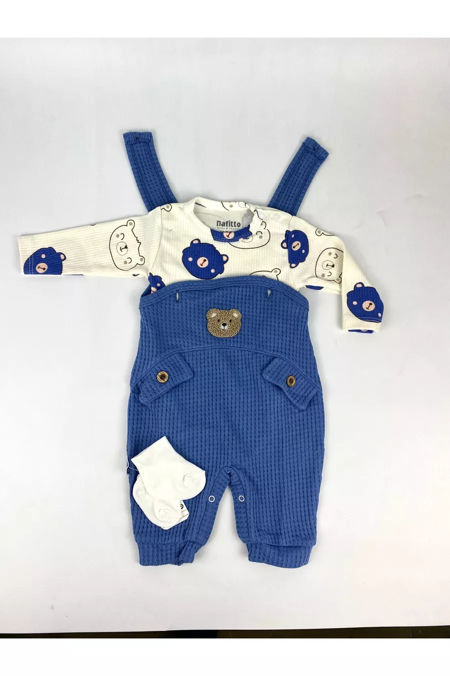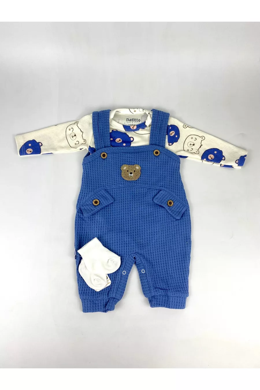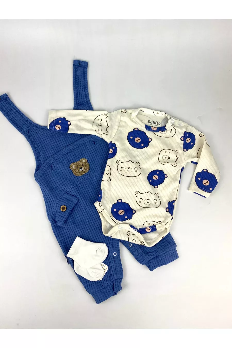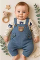 Ensemble de 3 pièces pour bébé garçon avec broderie d'ours – Body, Combinaison et Chaussettes | Vêtements pour bébé de 3, 6 et 9 mois
