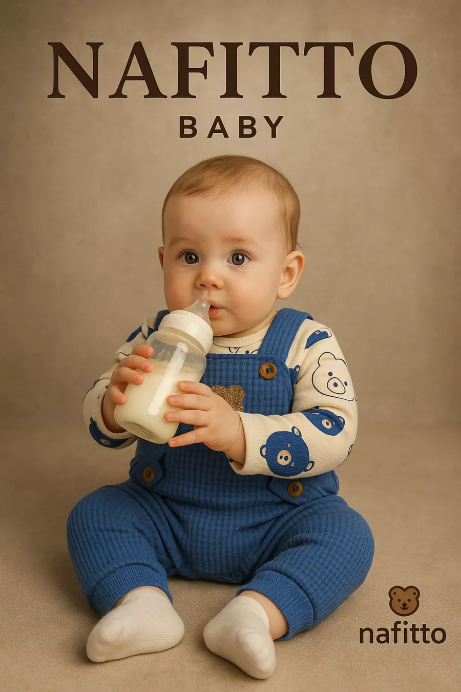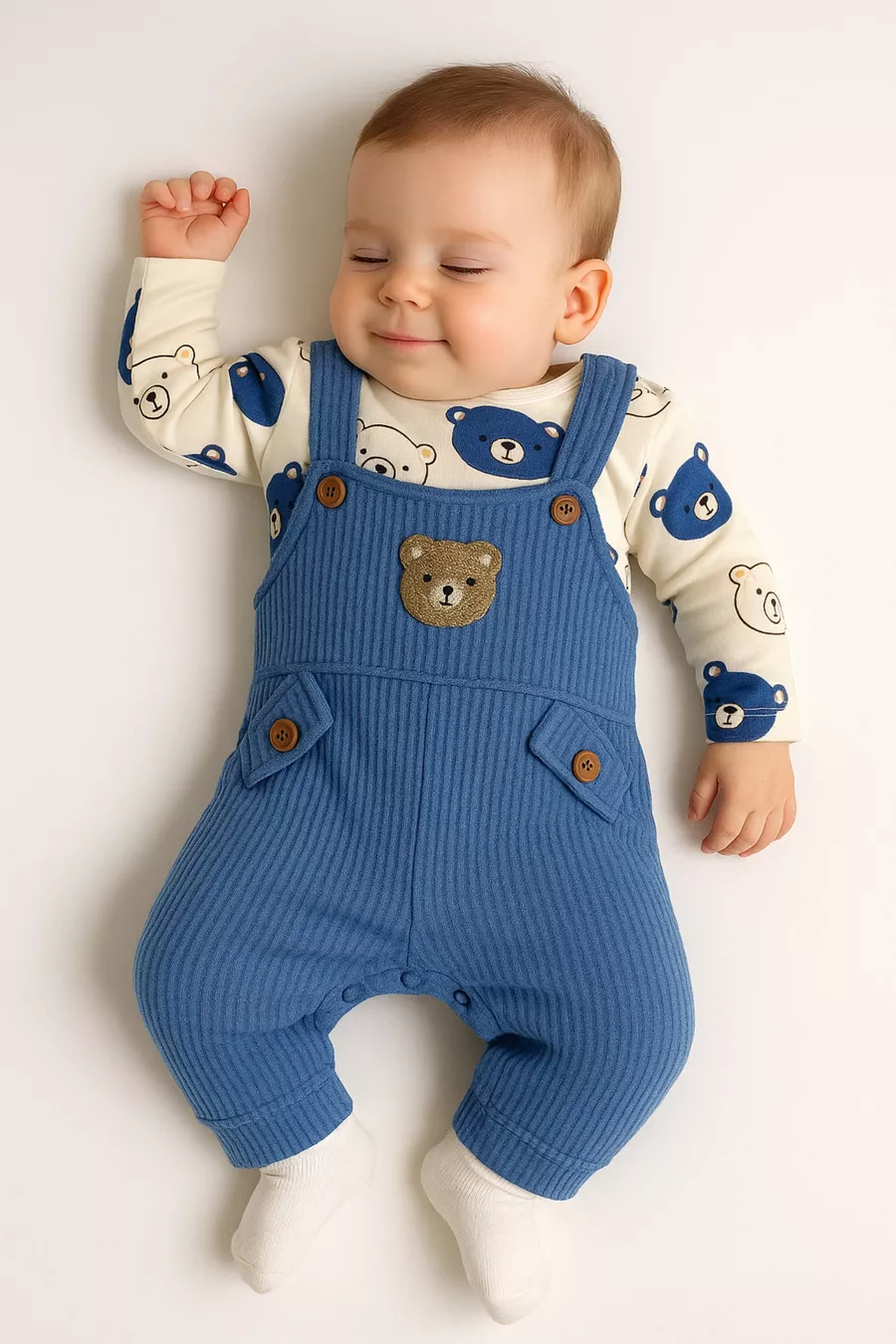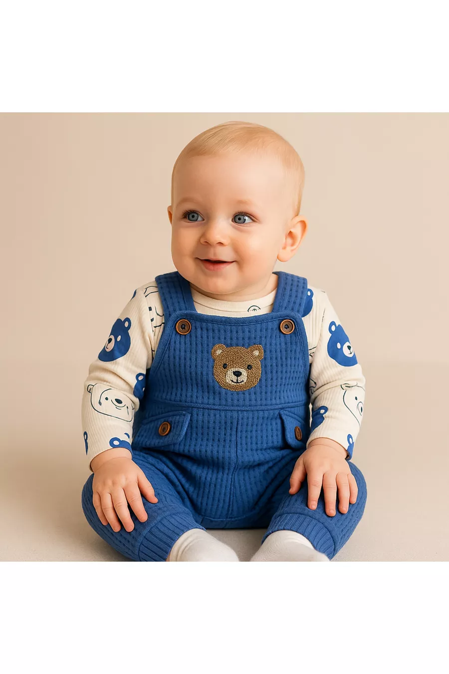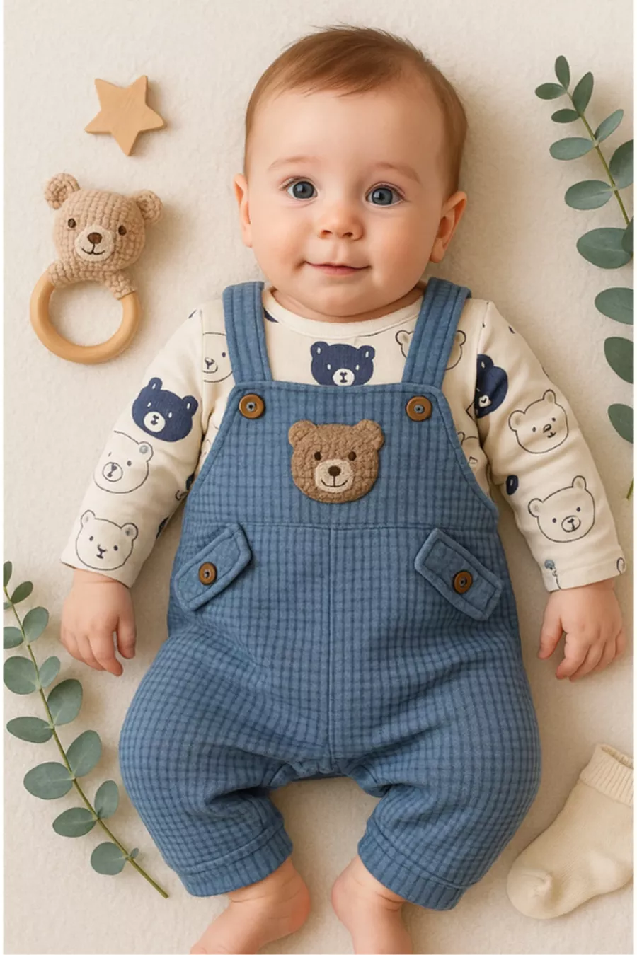 Ensemble de 3 pièces pour bébé garçon avec broderie d'ours – Body, Combinaison et Chaussettes | Vêtements pour bébé de 3, 6 et 9 mois