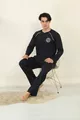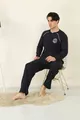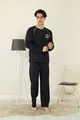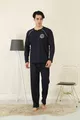 Couleur : Bleu marine Type de manche : Manches longues Motif : Uni Type de col : Col à boutons Longueur de jambe : Longue Matériau : 100 % coton Coupe : Grandes tailles Type de tissu : Tissé Usage : Homewear Détail sur la durabilité : Non Silhouette : Longue Longueur de manche : Longue Type de tissage : Suprem Taille : Taille normale Ensemble haut-bas : T-shirt - Survêtement Composition du matériau : 100 % coton Nombre de pièces : 2 pièces Instructions de lavage : T09 Type de bas : Coupe étroite Collection : Grandes tailles Contenu du paquet : 2 pièces Taille : Longue