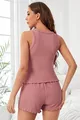 Ensemble de nuit pour femme en tricot côtelé avec short et volants en rose poudré