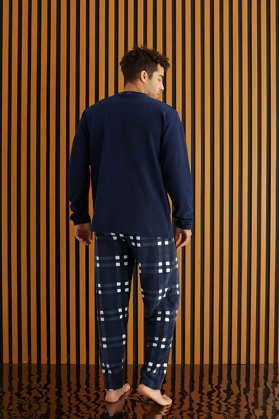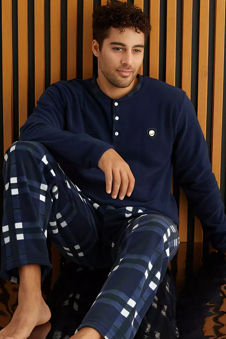 Ensemble de pyjama homme en polaire à carreaux bleu marine et blanc