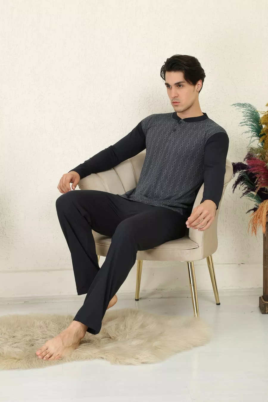 Ensemble de pyjama homme en coton supima jacquard %