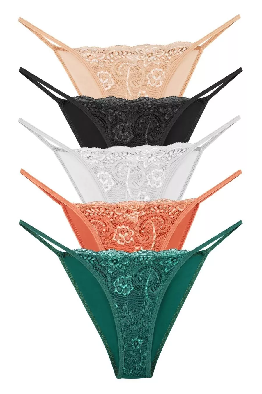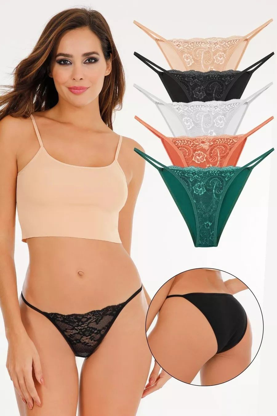 Ensemble de 5 culottes pour femme en dentelle à fil, couleurs assorties