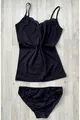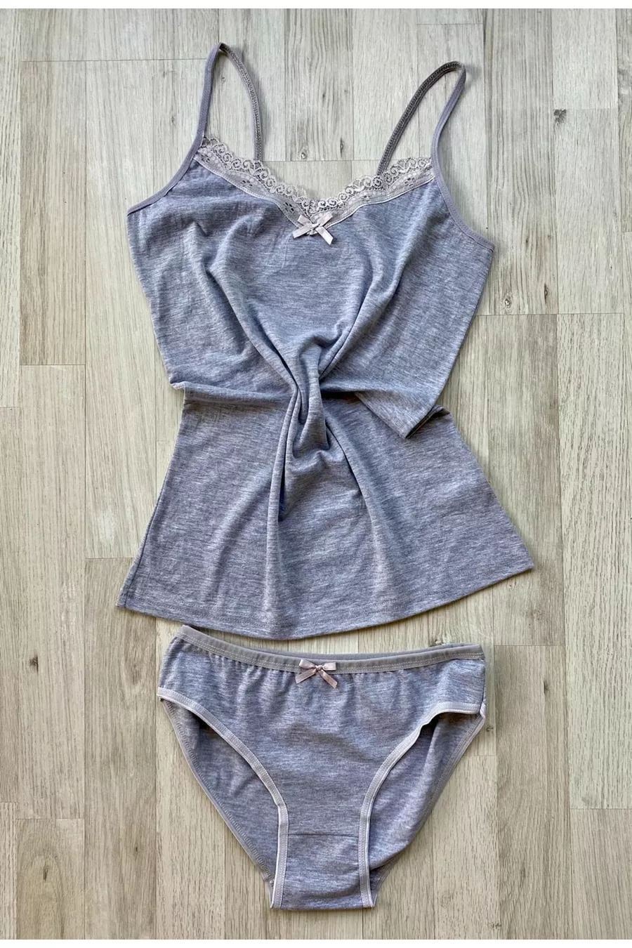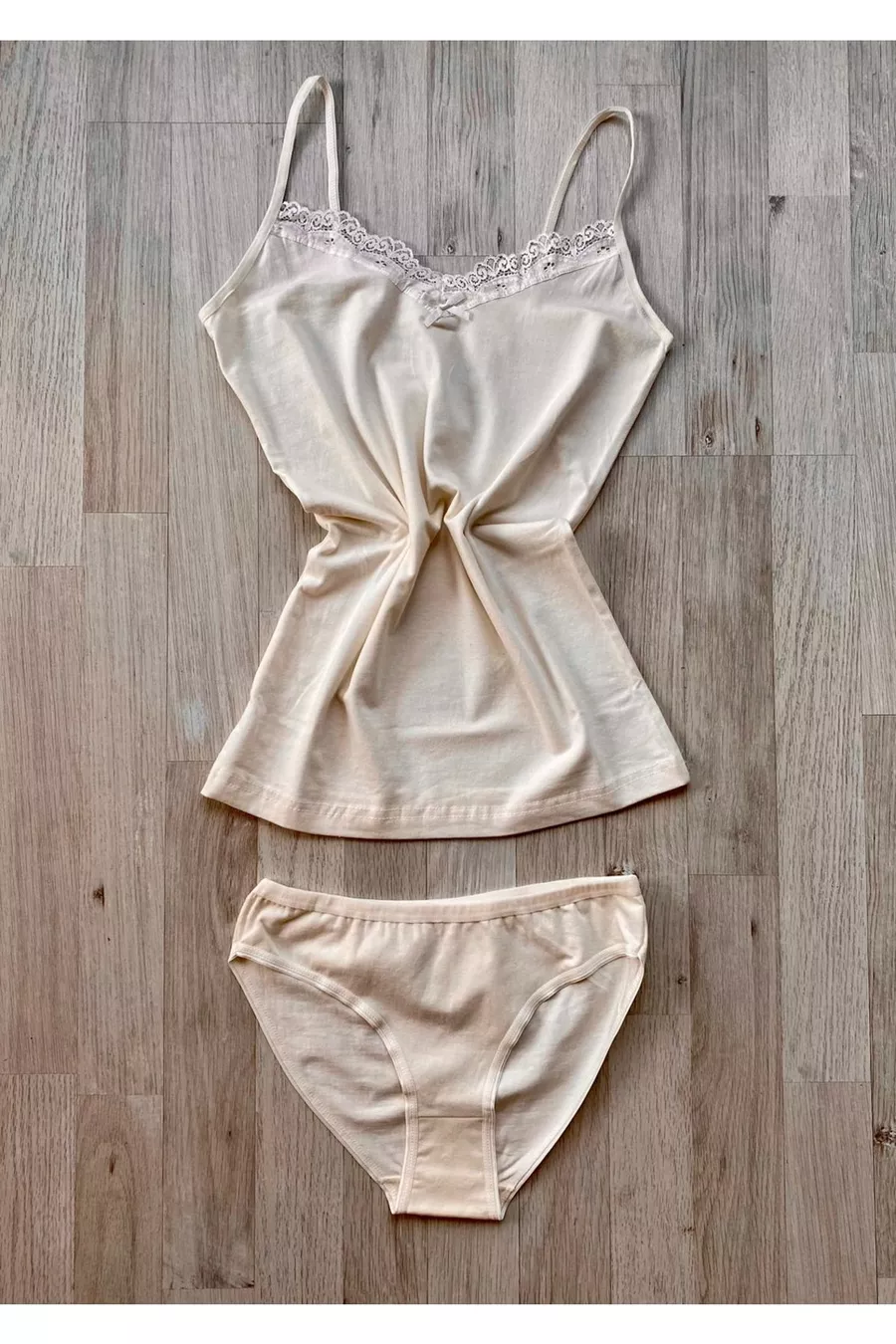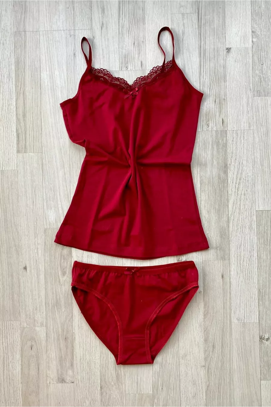 Ensemble de 6 pièces débardeur et culotte en coton avec dentelle à bretelles fines (ÉCRU, NOIR, SAUMON, BLEU MARINE, BORDEAUX, PRUNE, BLANC, GRIS)