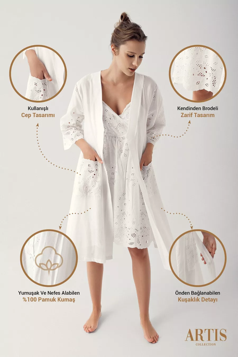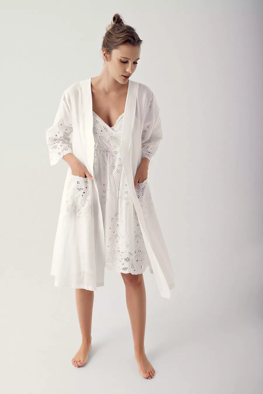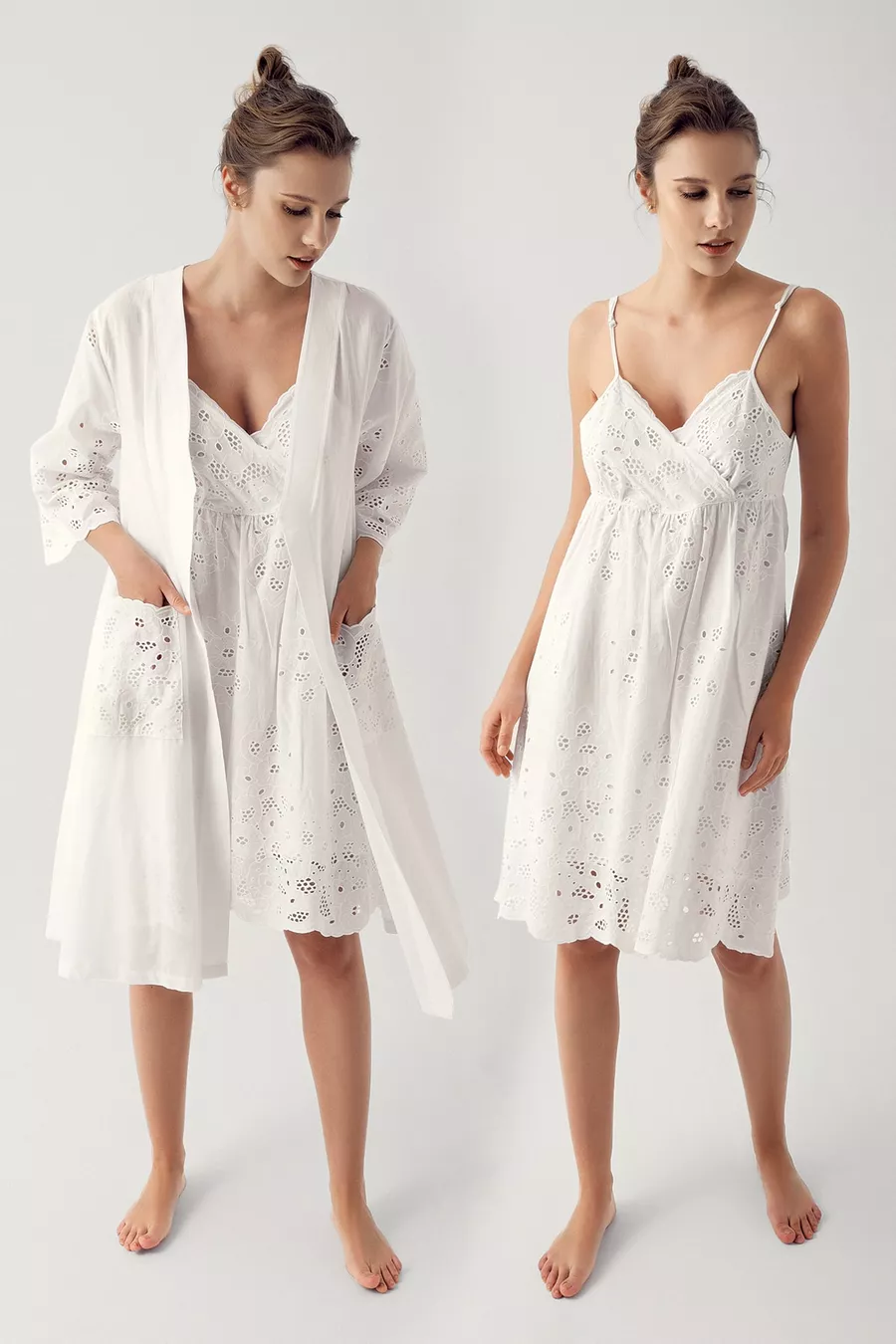 Ensemble de nuit et peignoir en coton tissé à bretelles