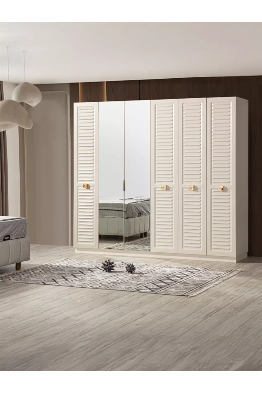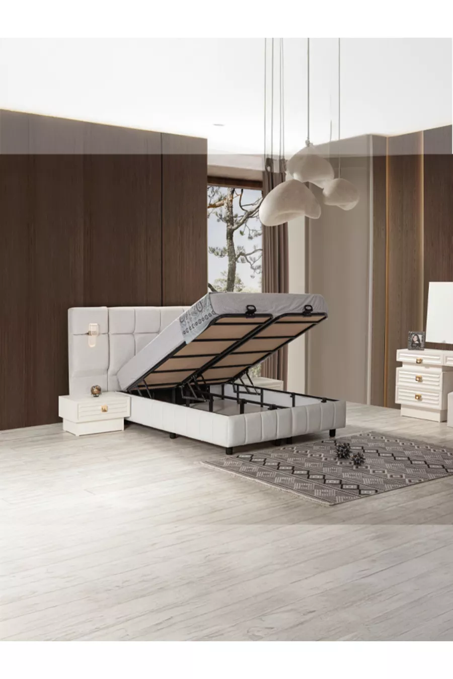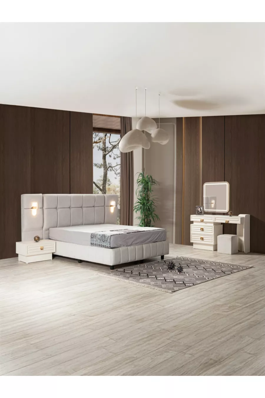 Contenu de l'ensemble : Lit + 2 tables de chevet + Commode + Matelas + Armoire