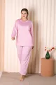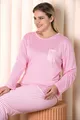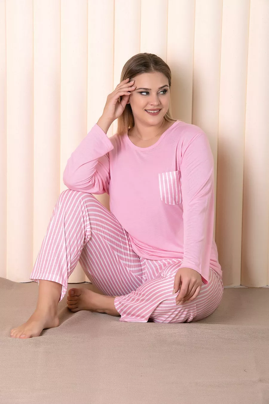 Ensemble de pyjama grande taille à manches longues rayé rose B-1