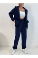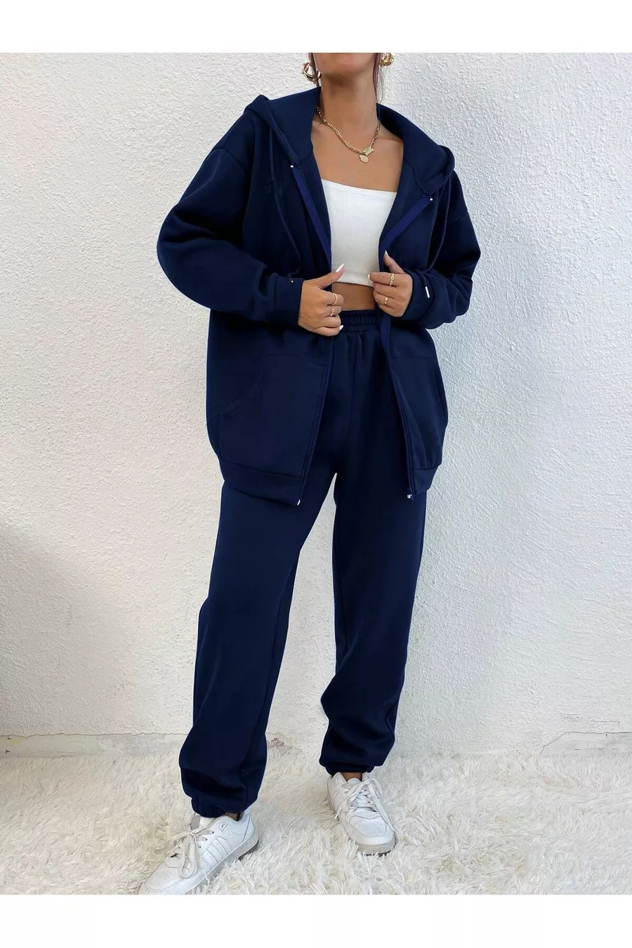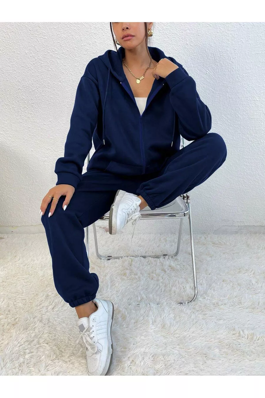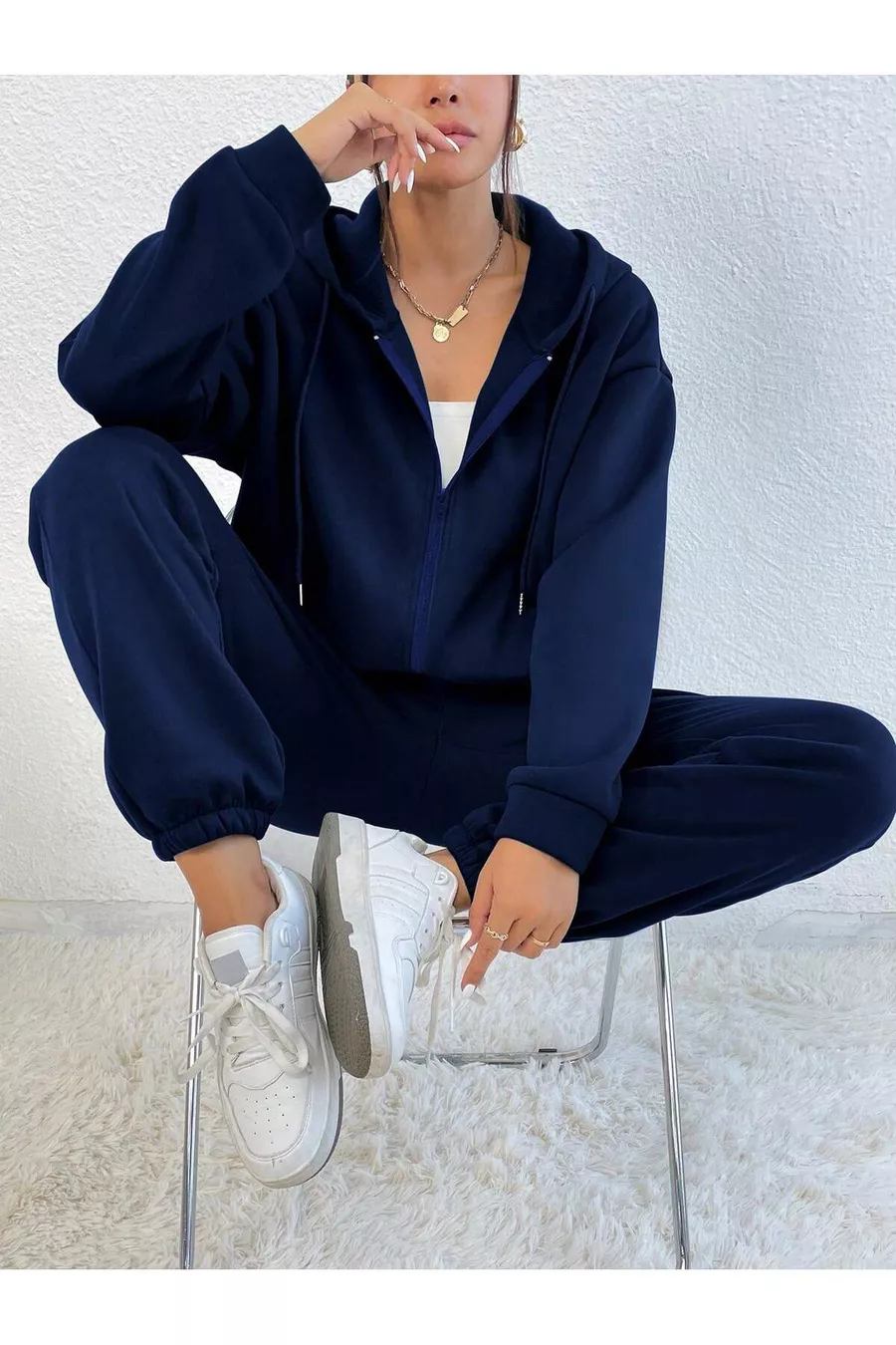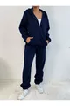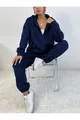 Ensemble de survêtement femme d'hiver épais oversize avec capuche zippée bleu marine