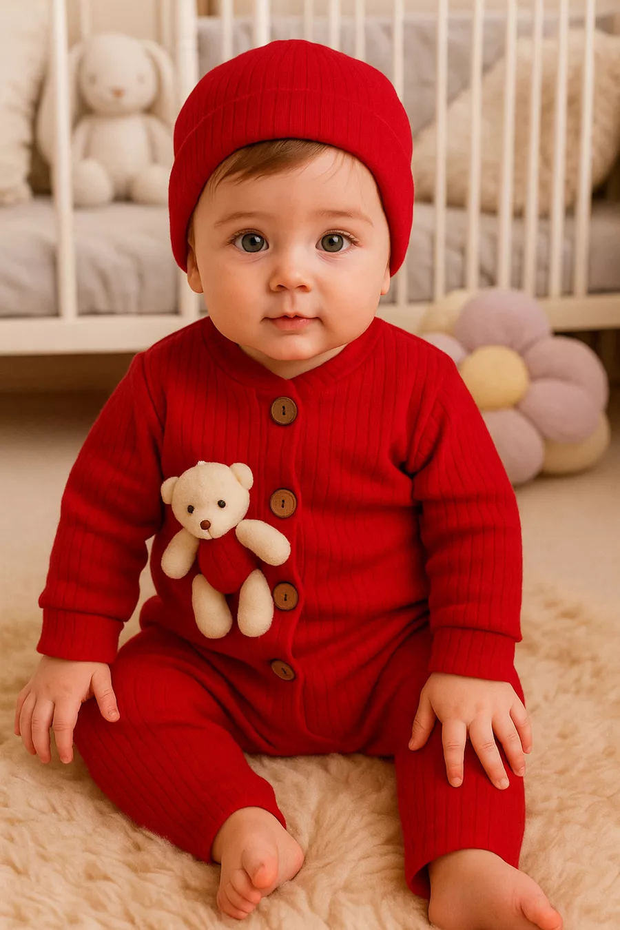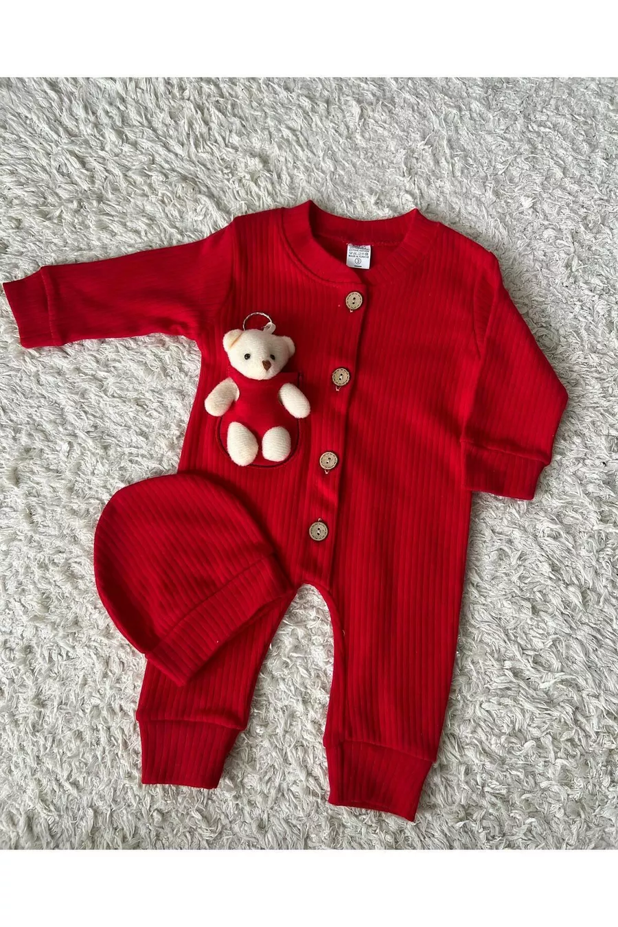 Ensemble de deux combinaisons pour bébé avec ours en peluche et chapeau – Doux et élégant, spécial pour la fête