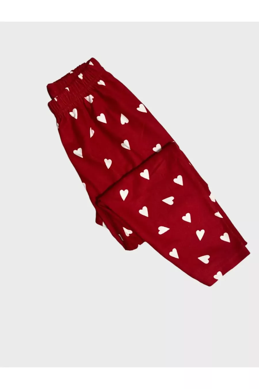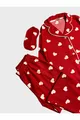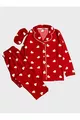 Ensemble de pyjama pour fille avec chemise à col, boutons et bande de sommeil, manches longues, en suède coton avec motif cœur rouge