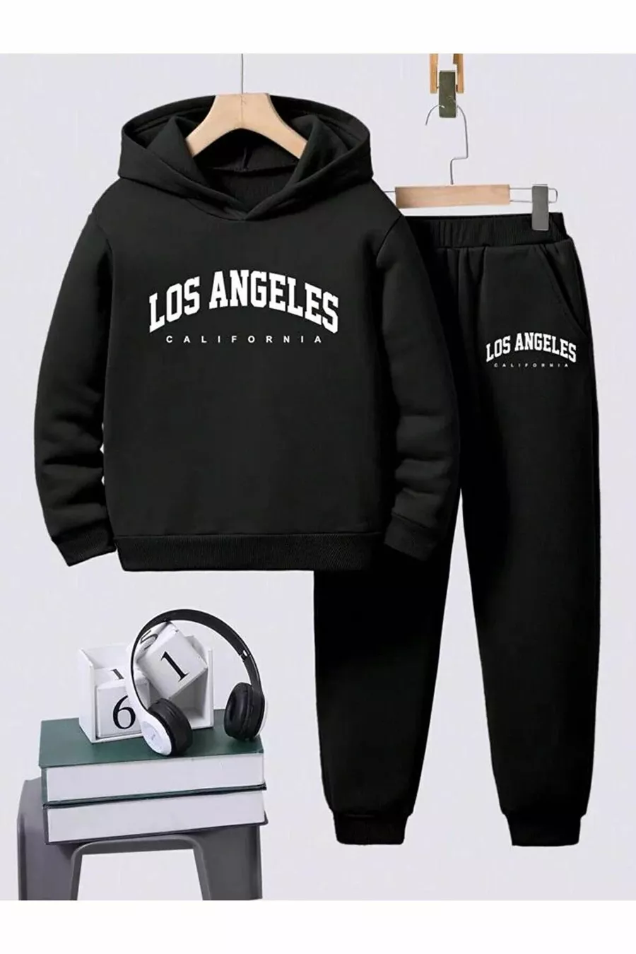 Ensemble de survêtement pour fille/garçon avec capuche noire et motif Los Angeles