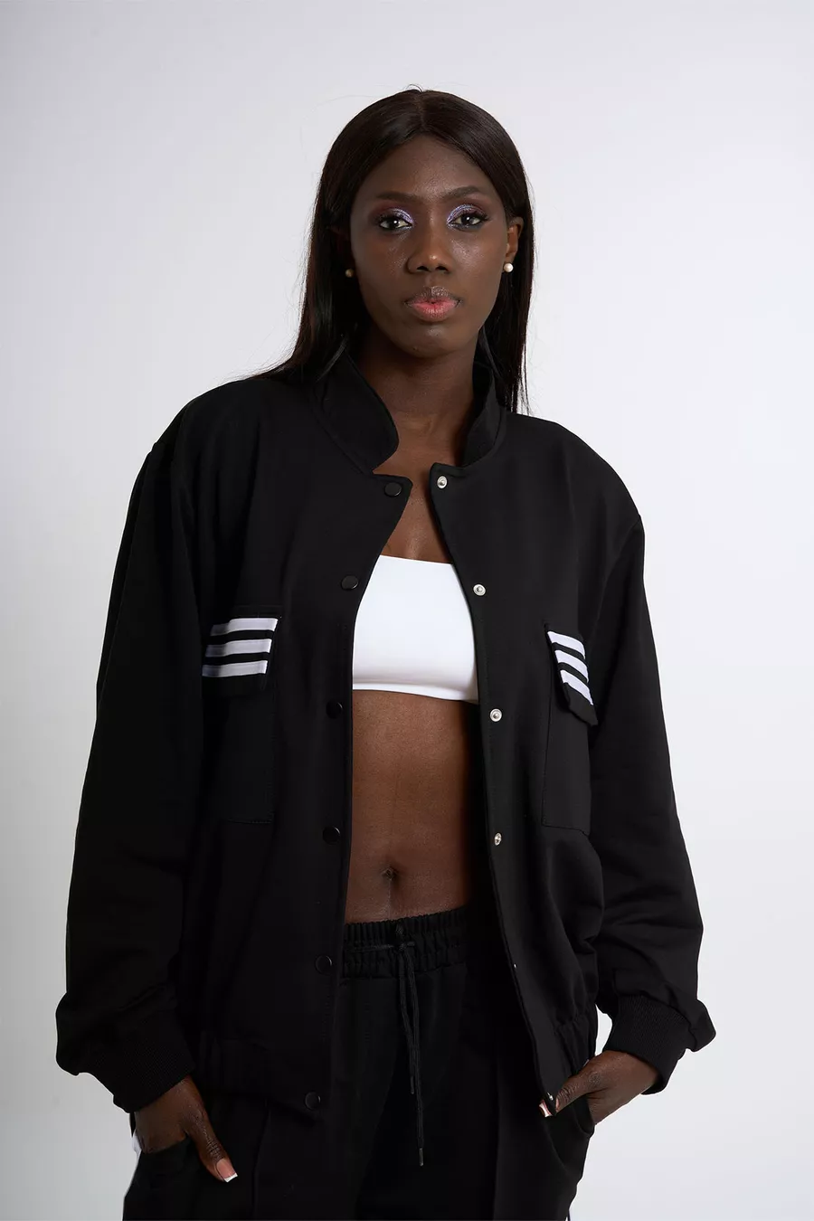 Ensemble de survêtement à cardigan rayé